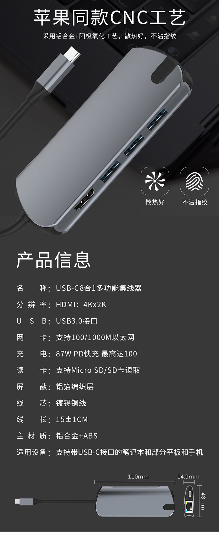• 8in1 [기가비트 네트워크 포트-4K@30Hz]