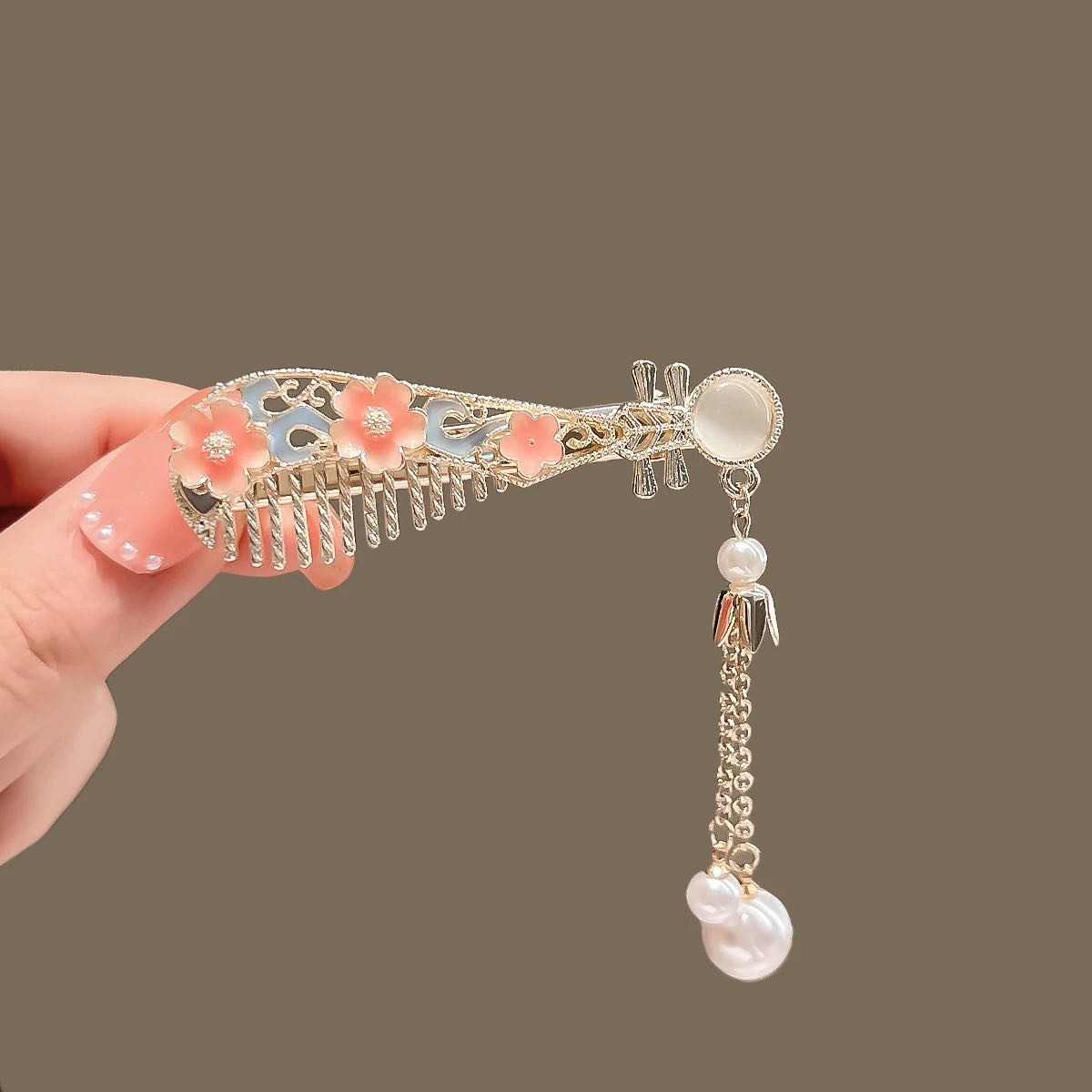 레트로 클래식 스타일 꽃 머리핀 한푸 모자 머리핀 여자의 사이드 클립 술 팬 오리 빌 클립 피파 앞머리 클립