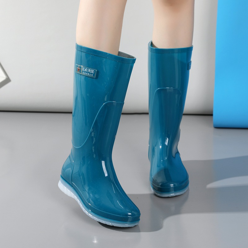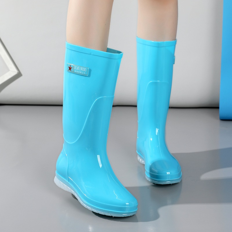 여성용 고층 레인 부츠 탈부착 면 방수 내마모성 작업 고무 신발 사계절 웨어러블 워터 슈즈 단색 롱 레인 부츠스토어 가기