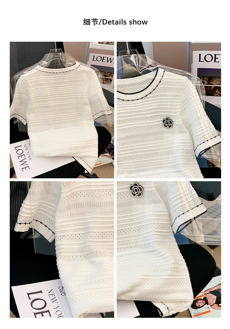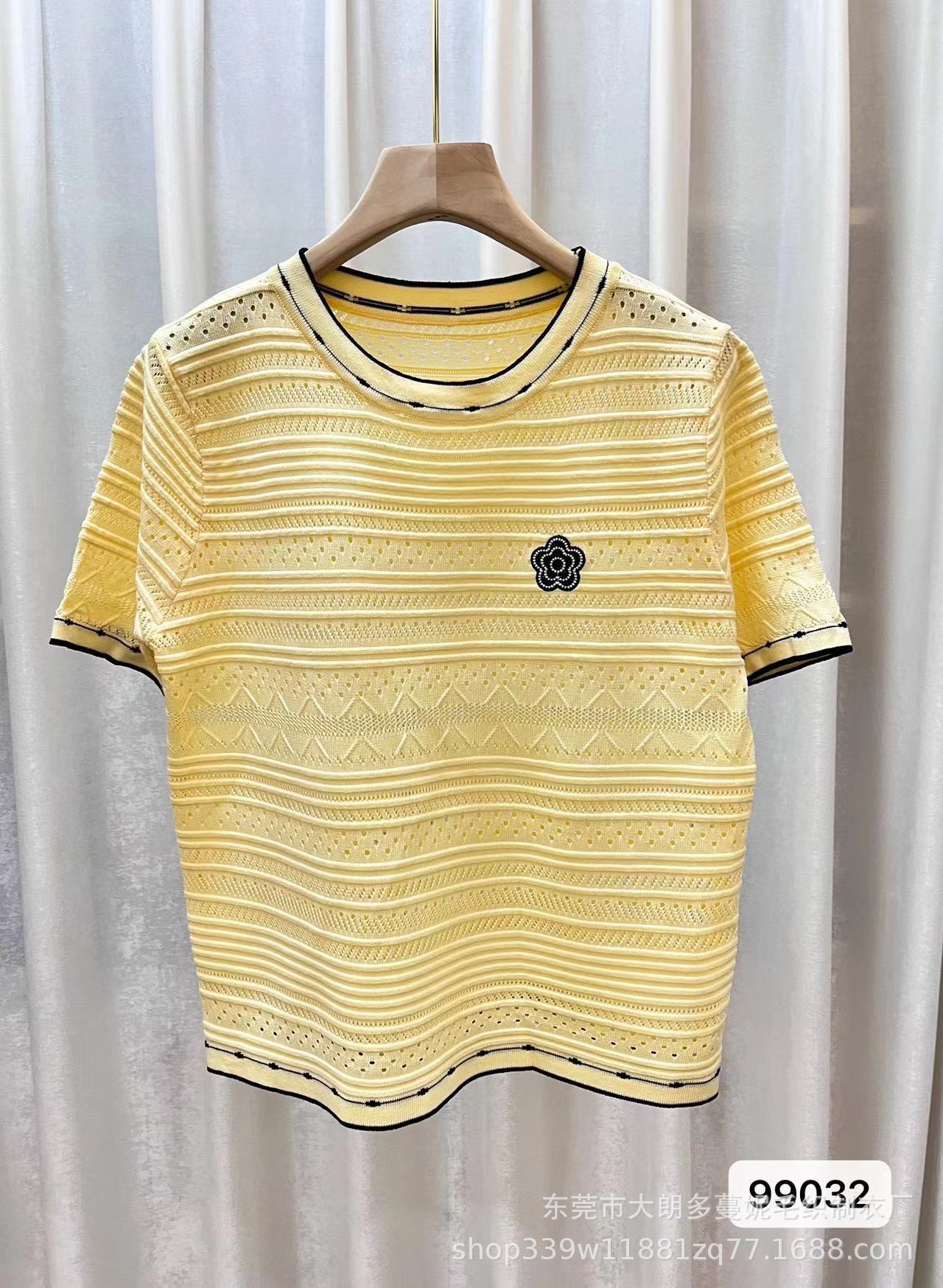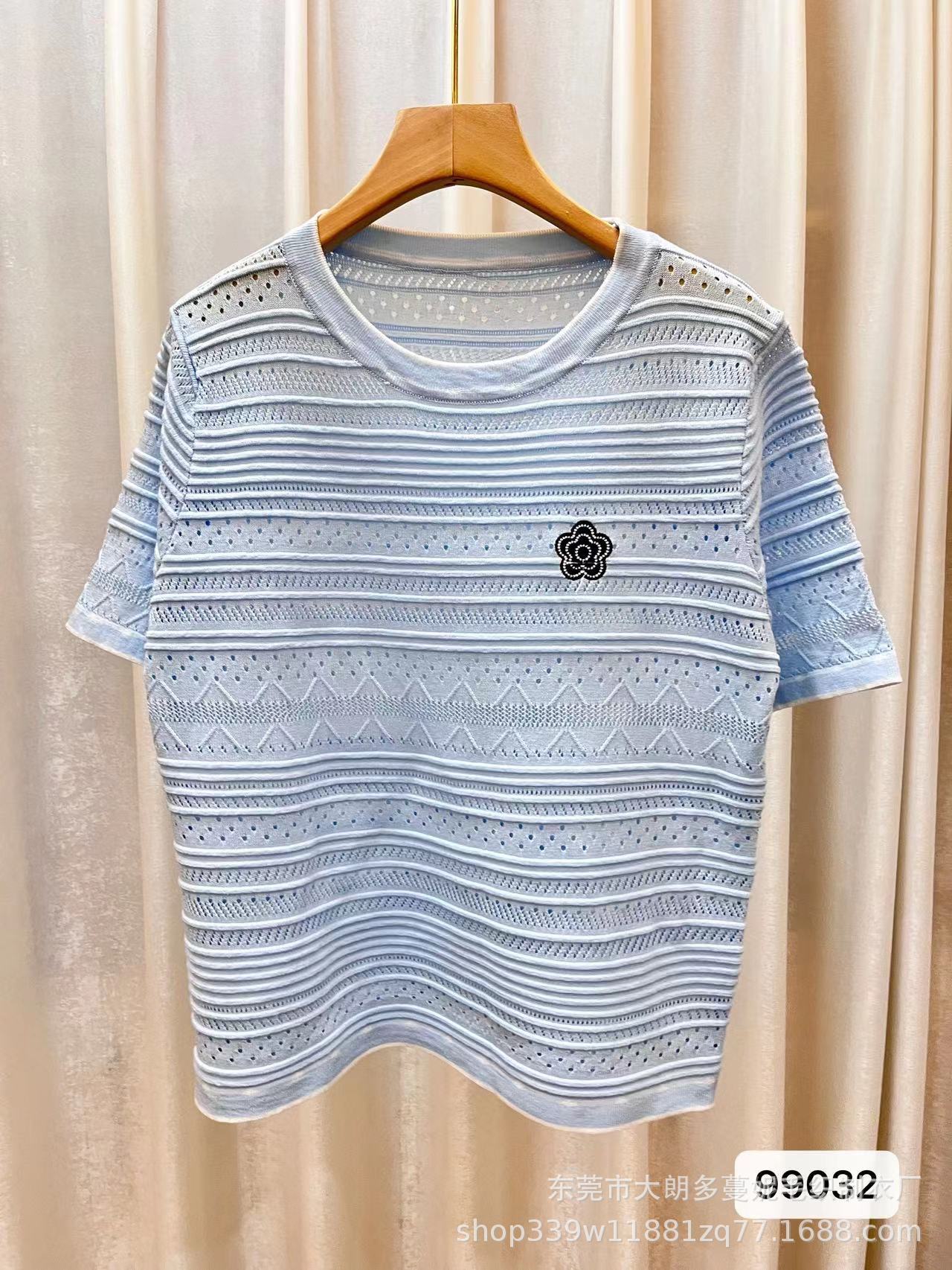 크로스 보더 스타일 반팔 티셔츠 여성용 여름 얇은 얼음 쿨 실크 샤넬 스타일 디자인 감각 짧은 니트 셔츠 여름 탑스토어 가기