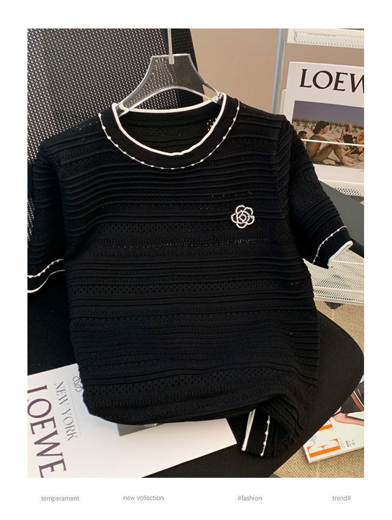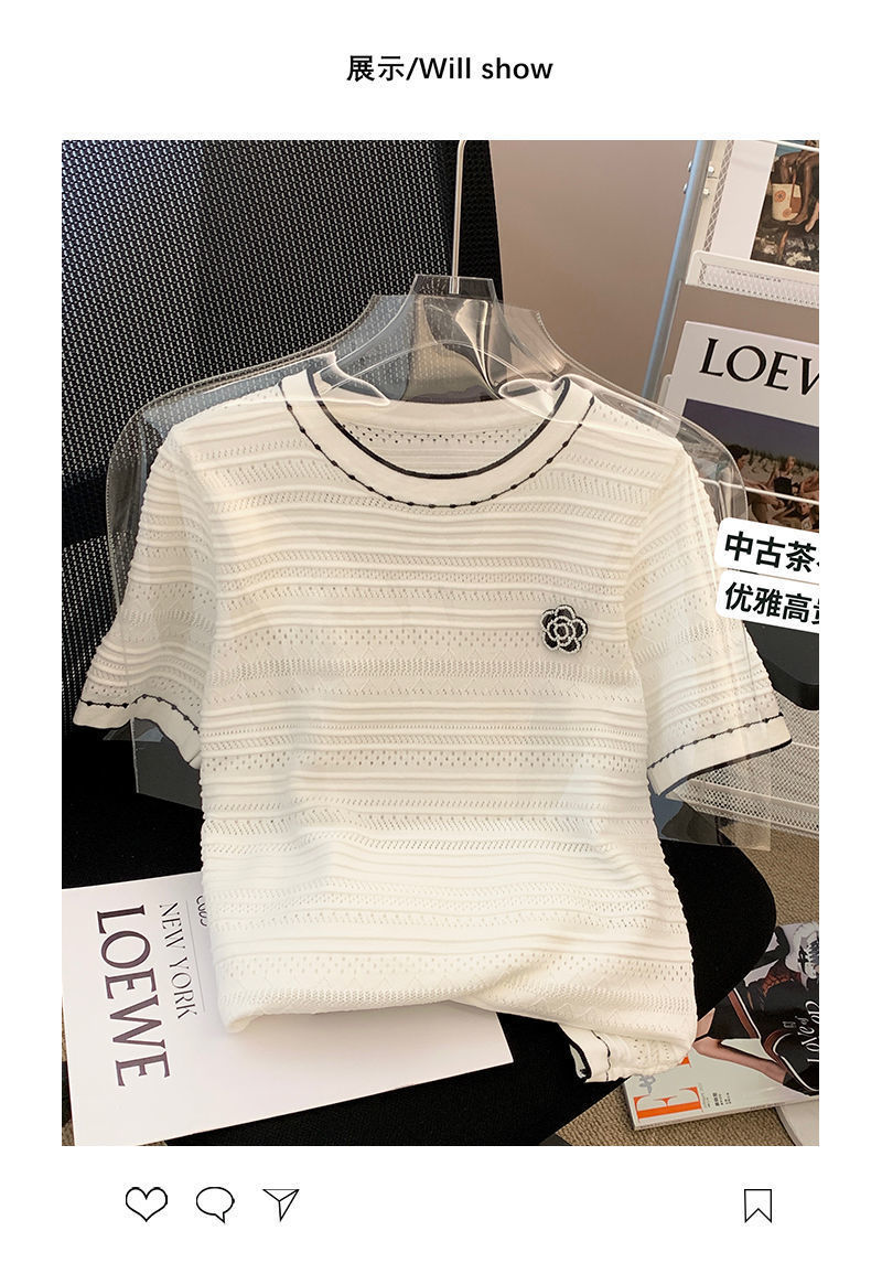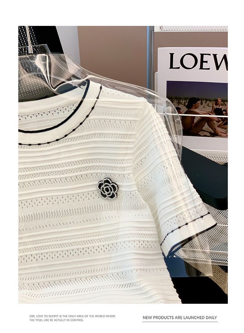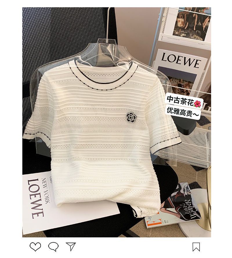 크로스 보더 스타일 반팔 티셔츠 여성용 여름 얇은 얼음 쿨 실크 샤넬 스타일 디자인 감각 짧은 니트 셔츠 여름 탑스토어 가기