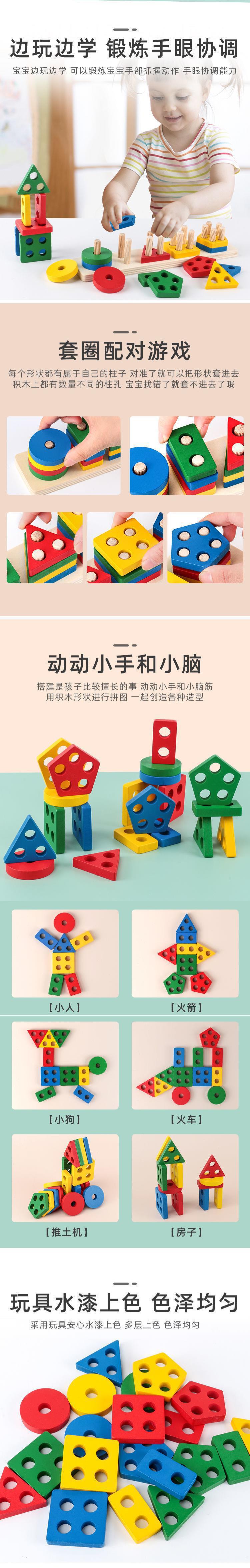기하 모양 매칭 기둥 빌딩 블록 4 조 조기 교육 교구 보조기 소아 1-2-3 세 유아 정밀 운동 훈련