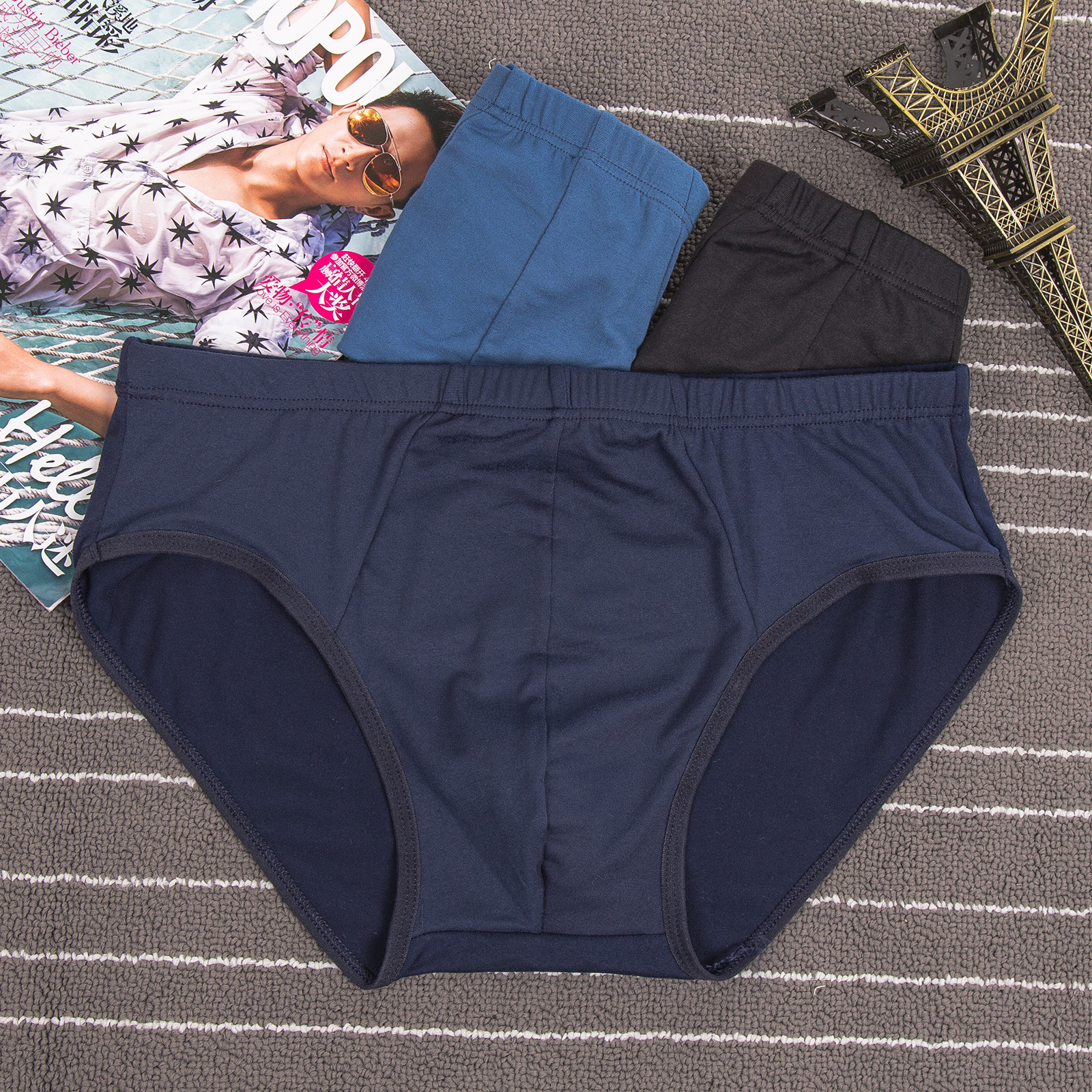 남자 팬티 우유 실크 단색 간단한 허리 통기성 속옷 팬티 저렴 재고 도매