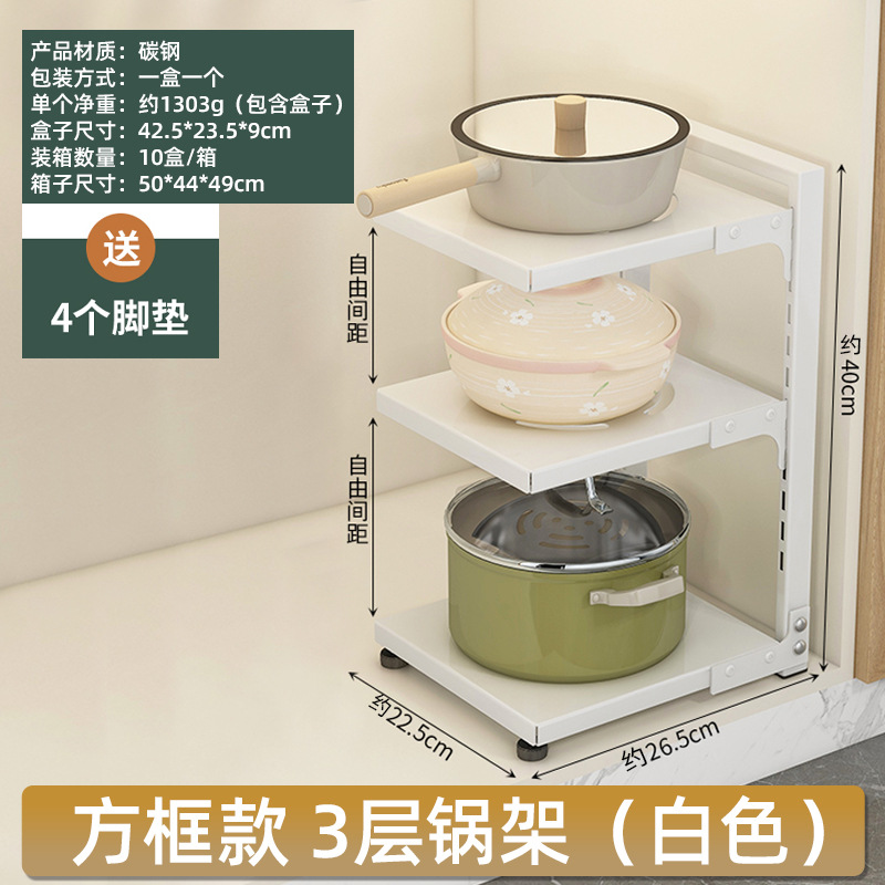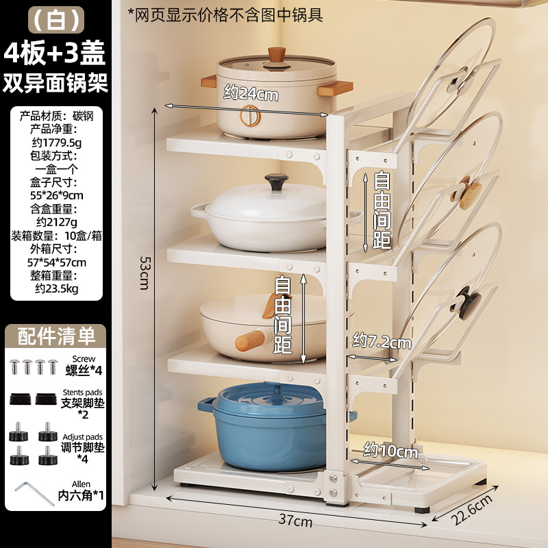 • 양면 상자 3 + 4 층 냄비 랙 (흰색)