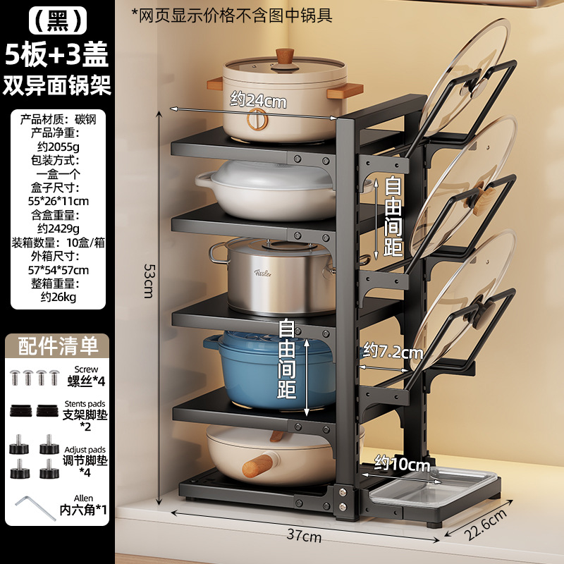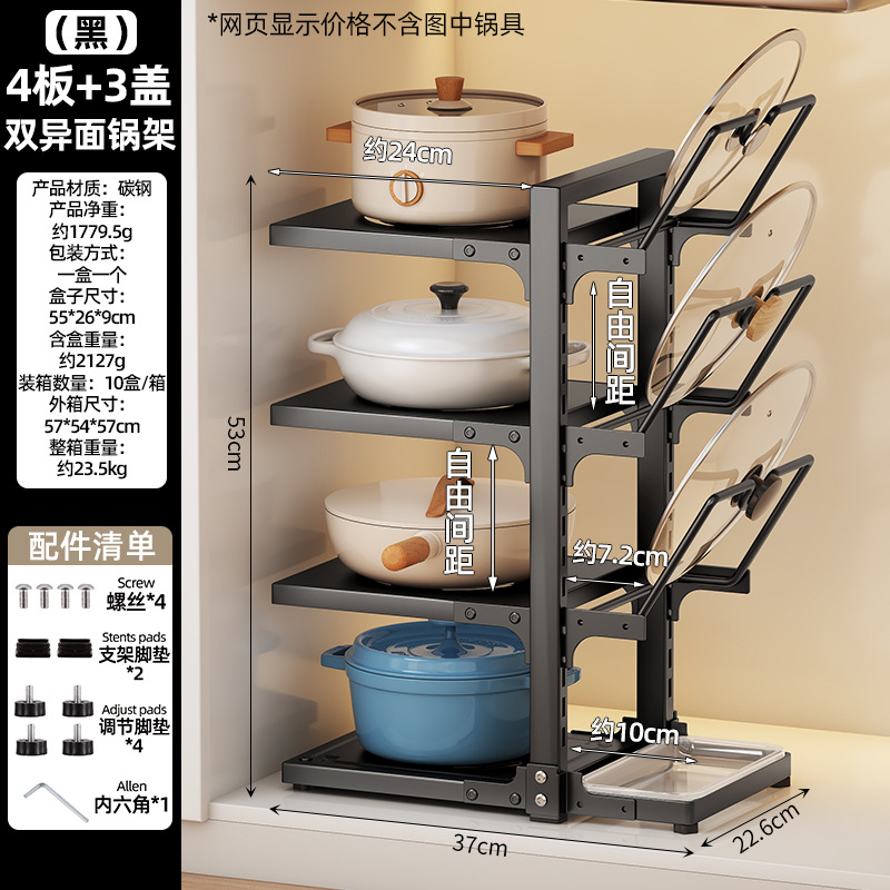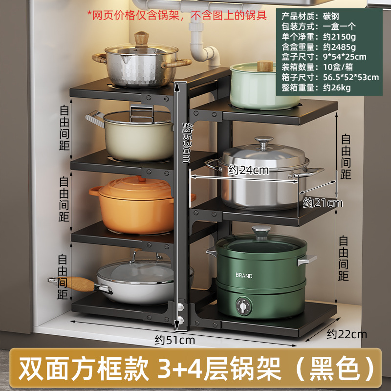 • 양면 상자 3 + 4 층 냄비 랙 (검정)
