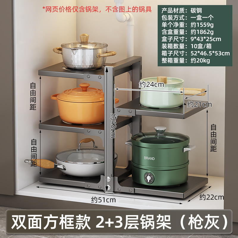 • 양면 상자 2 + 3 층 냄비 랙 (총 회색)