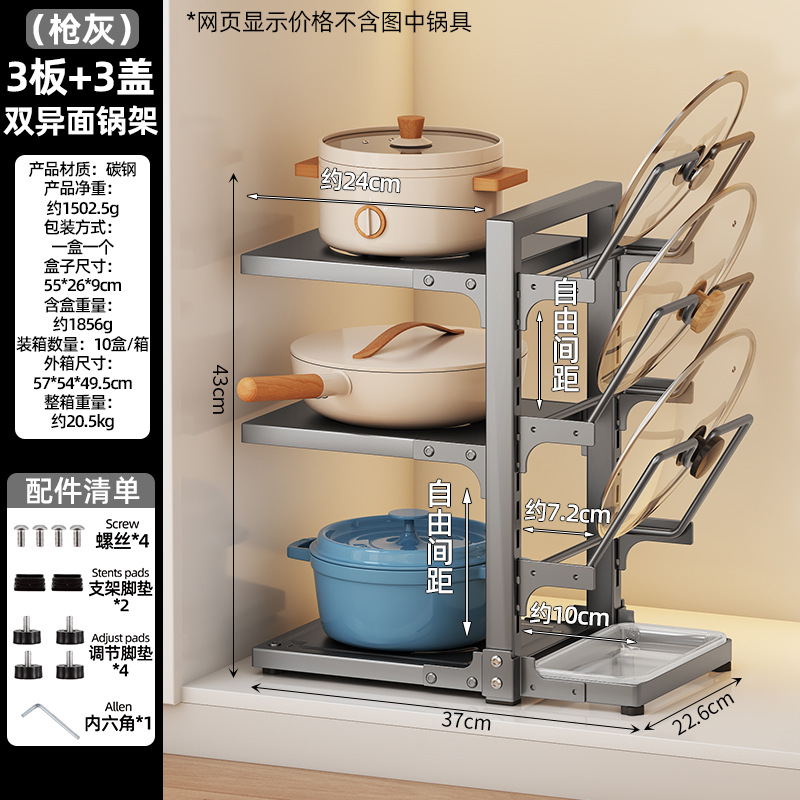 • 양면 상자 3 + 4 층 냄비 랙 (총 회색)