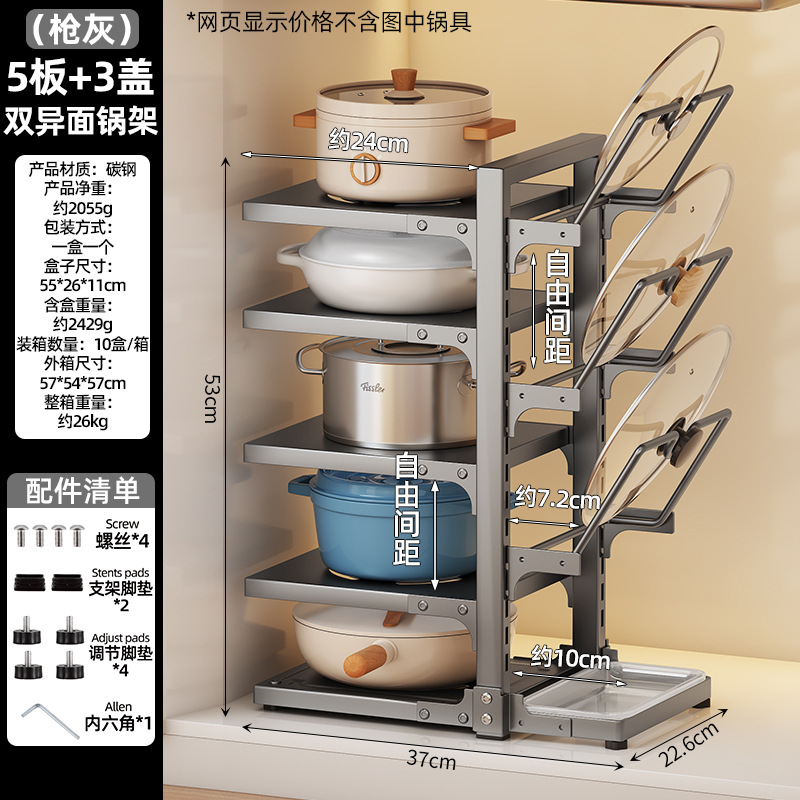 주방 랙 가정용 바닥 스탠딩 다층 냄비 보관함 다기능 싱크대 캐비닛 계층화 된 냄비 랙