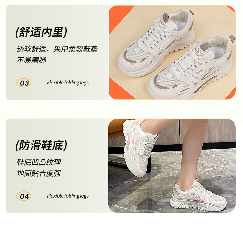 2026 봄 신상 레이스업 캐주얼 운동화, 두꺼운 밑창 메쉬 소재의 아빠 신발, 초경량 소프트솔 런닝화, 학생화스토어 가기