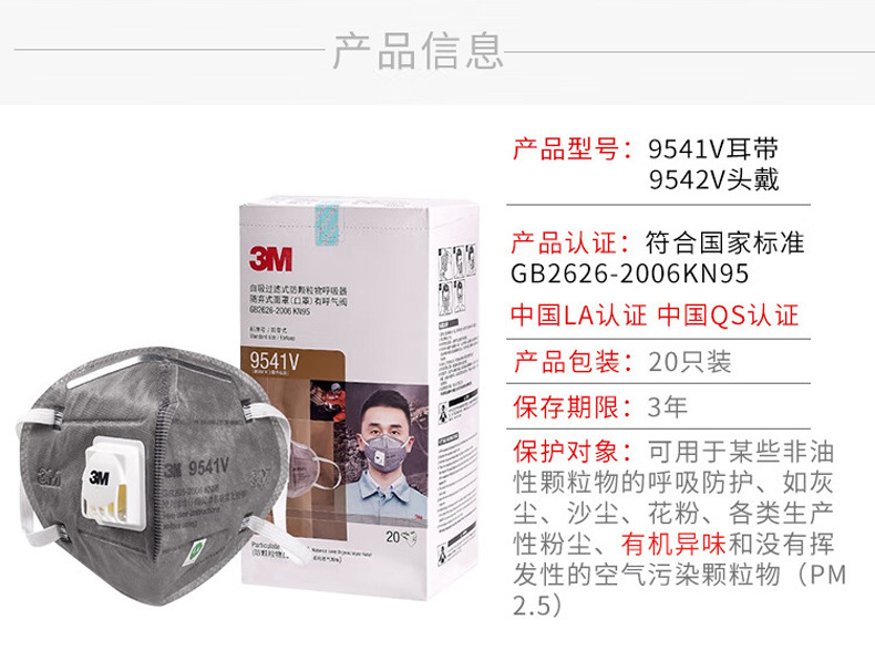 3M 9542V/9541V 귀 매달려 머리 장착 장식 포름 알데히드 산업 먼지 마스크 KN95 마스크 도매