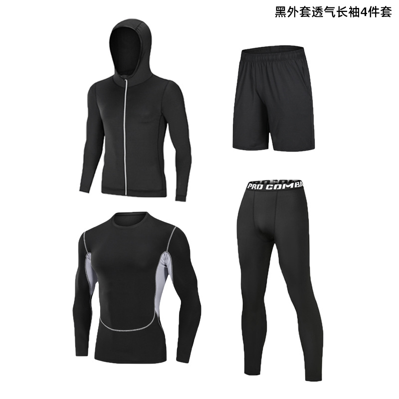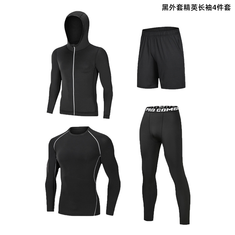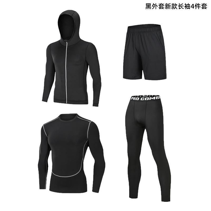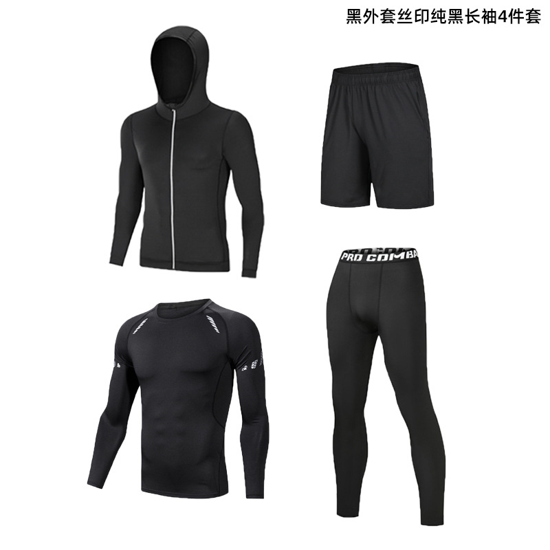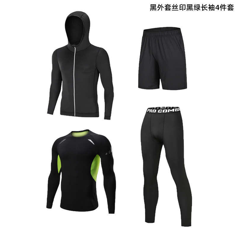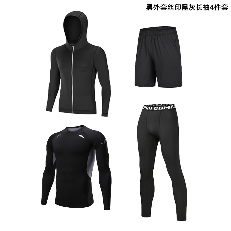 피트니스 의류 남자의 스포츠 세트 봄과 가을 속건 옷 꽉 옷 실행 장비 야외 훈련 아침 실행 옷 긴 소매