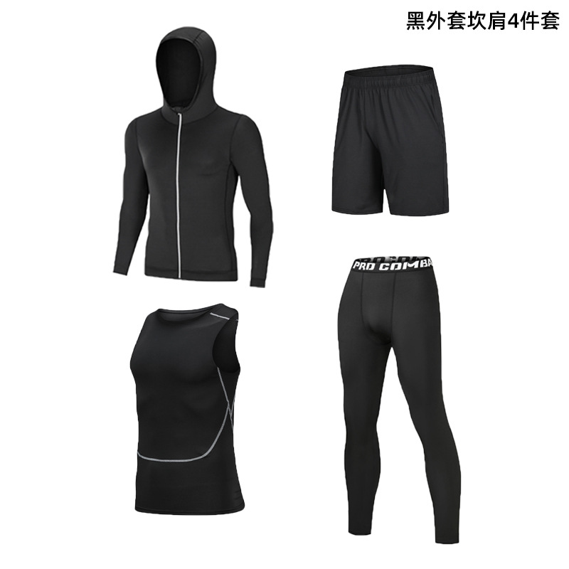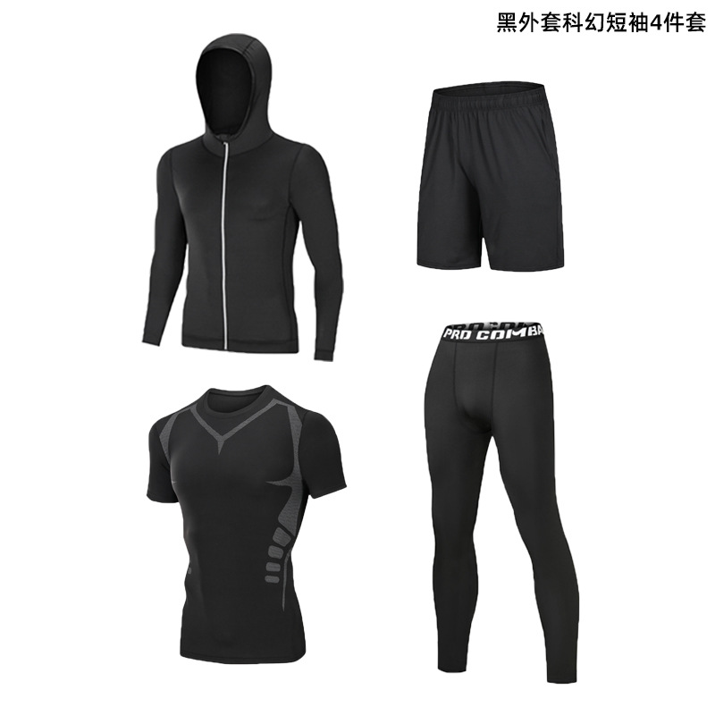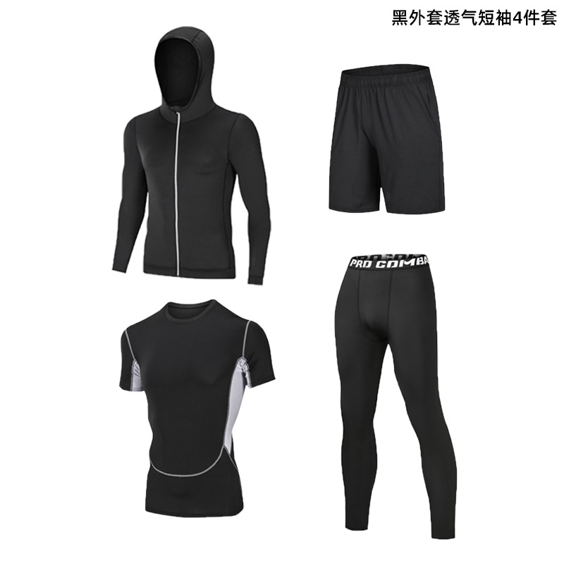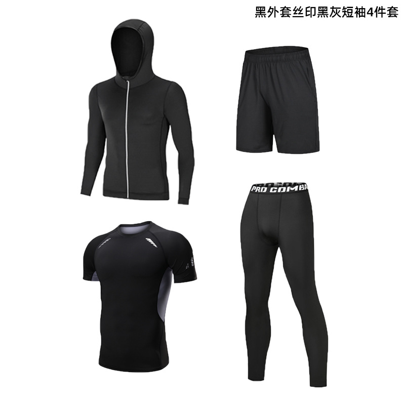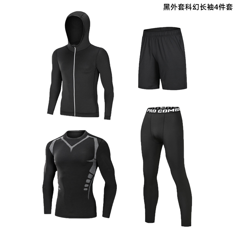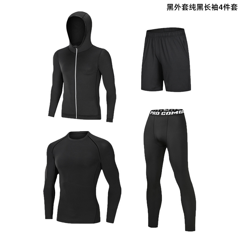 피트니스 의류 남자의 스포츠 세트 봄과 가을 속건 옷 꽉 옷 실행 장비 야외 훈련 아침 실행 옷 긴 소매