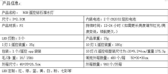 RGB 다채로운 원격 제어 노브 LED 다이아몬드 다이빙 라이트 파티 장식 조명 수족관 미니 어항 장식 조명