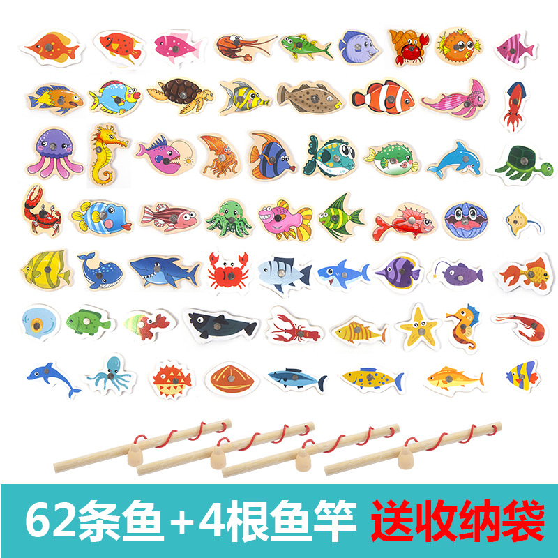 Daifa 어린 아이들을위한 특별한 나무 자석 물고기 아기 손에 부모-자식 게임 유치원 재료 낚시 장난감