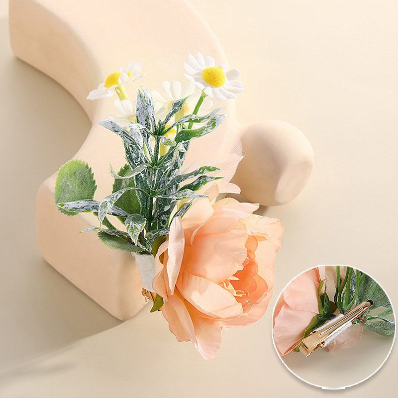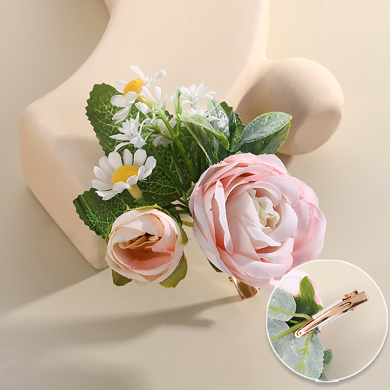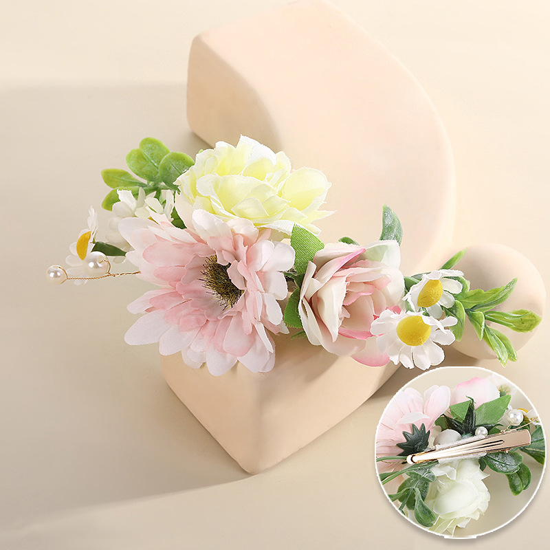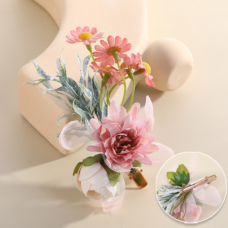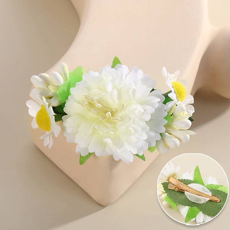 꽃 머리핀 신선한 데이지 꽃 머리핀 수제 인공 꽃 머리핀 무대 공연 금속 가장자리 머리핀 헤어 액세서리