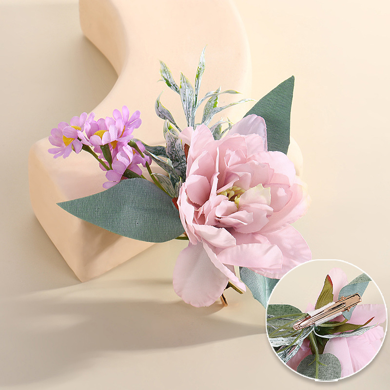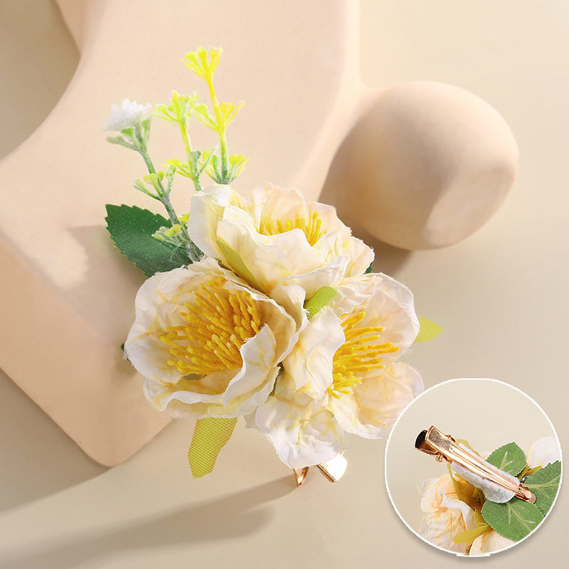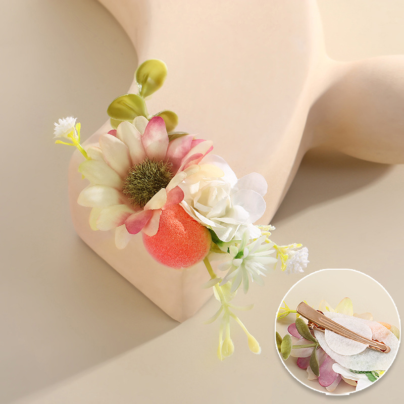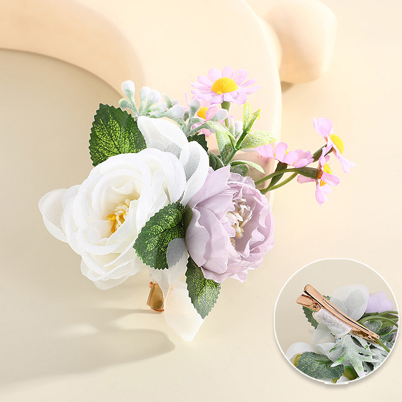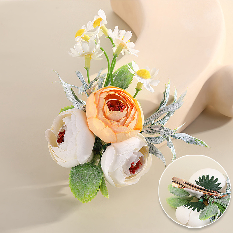 꽃 머리핀 신선한 데이지 꽃 머리핀 수제 인공 꽃 머리핀 무대 공연 금속 가장자리 머리핀 헤어 액세서리