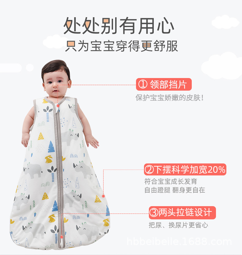 Babai 토끼 가을, 겨울 신생아 의류 아기 안티 킥 이불 순수 코튼 아동 의류 아기 조끼 침낭 통기성