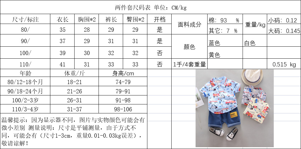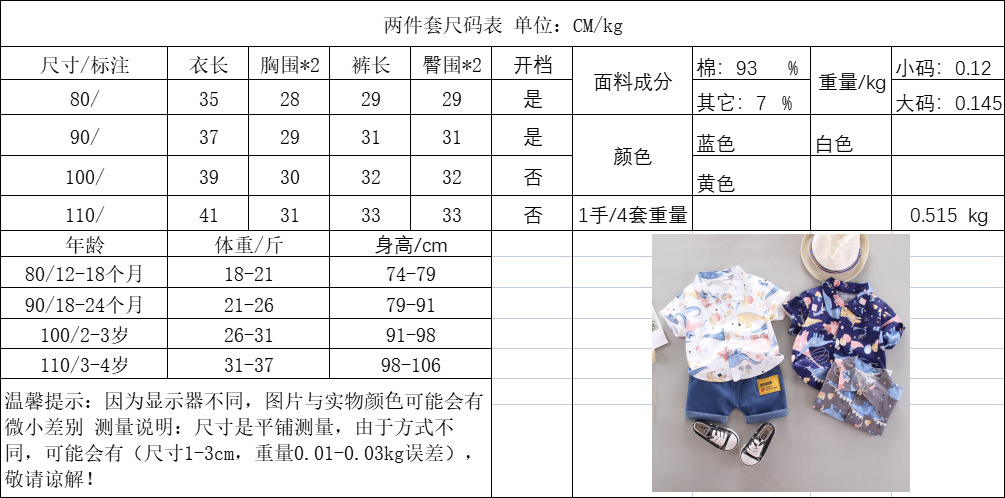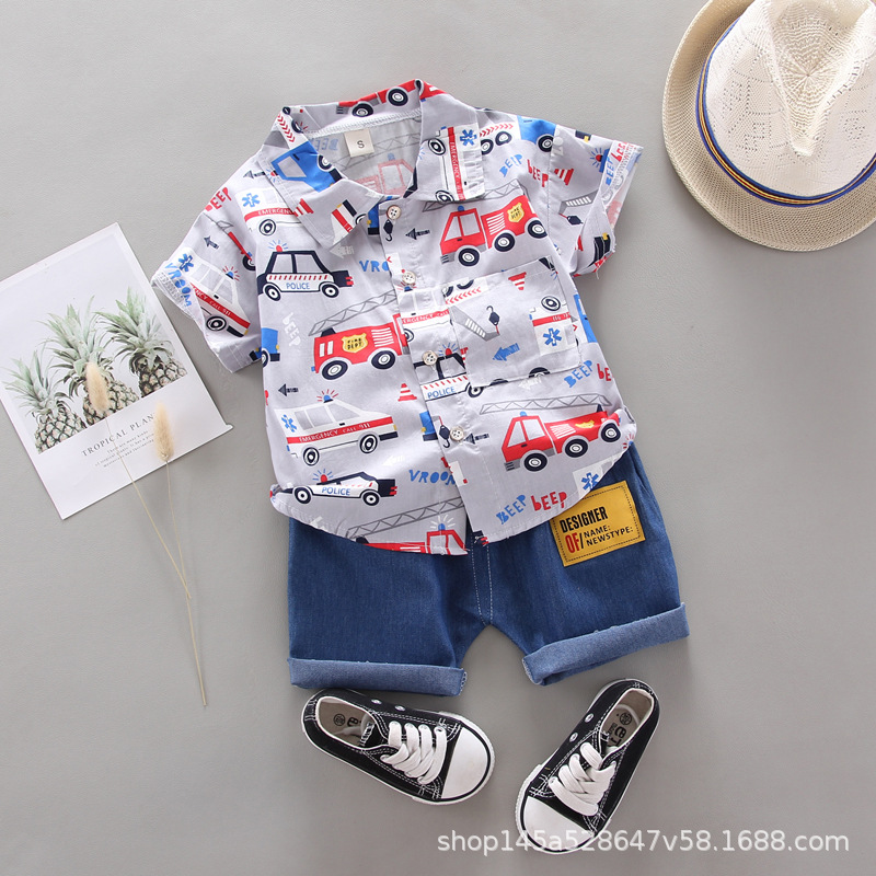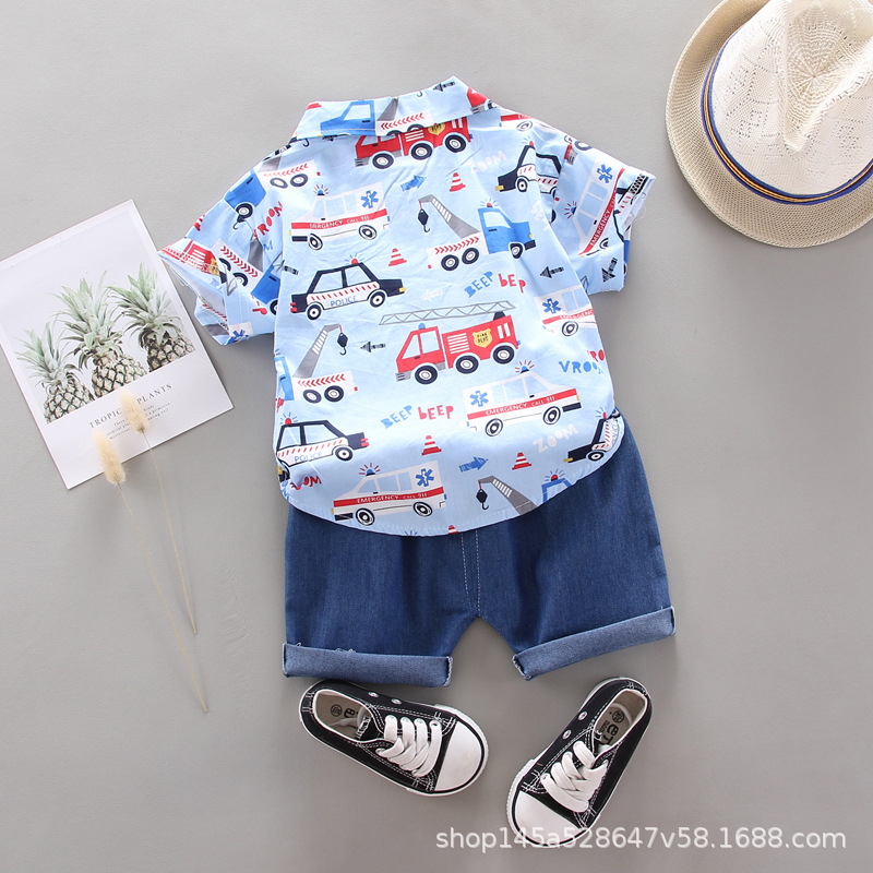 여름 반팔 새로운 소년 옷 아기 Lel 세트 1-4 세 어린이 만화 3 아기 여름 투피스 세트