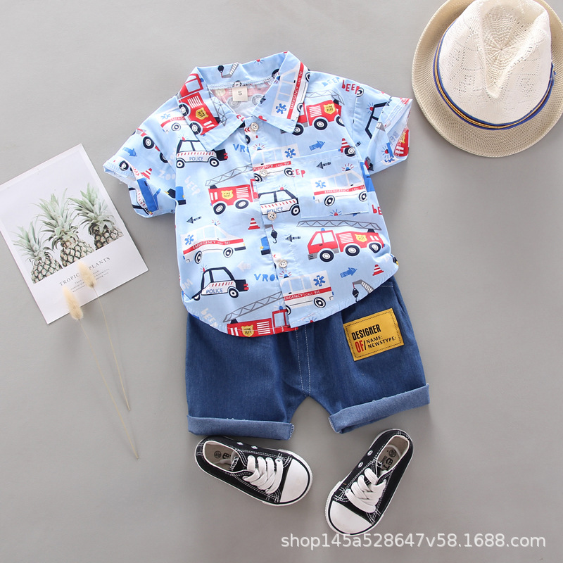 여름 반팔 새로운 소년 옷 아기 Lel 세트 1-4 세 어린이 만화 3 아기 여름 투피스 세트스토어 가기
