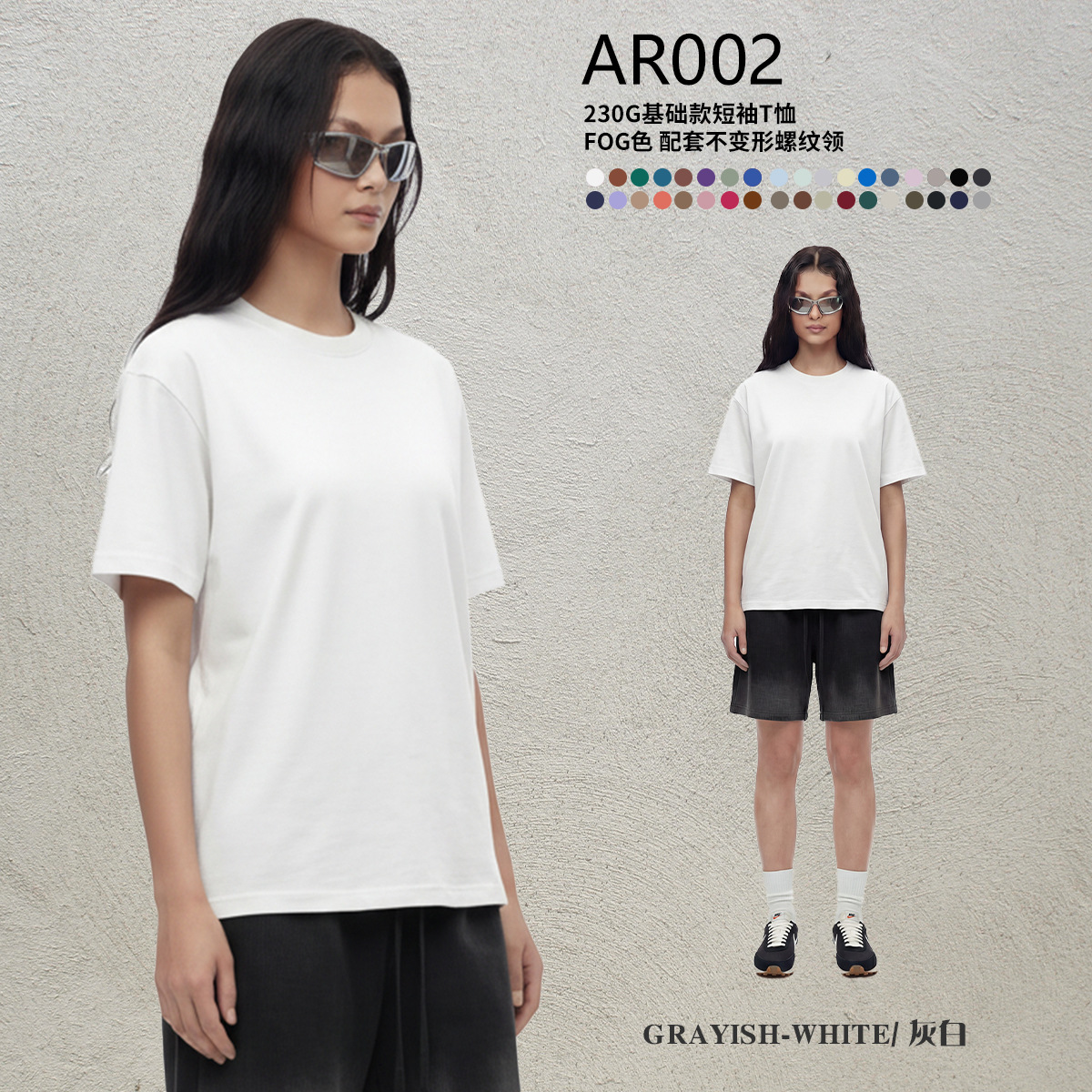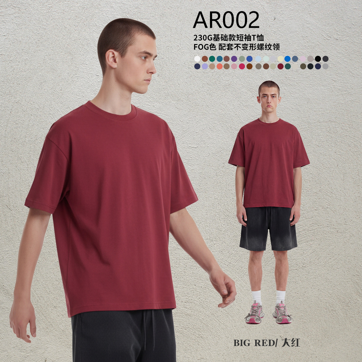 AR 대형 남성 유럽과 미국의 유행 브랜드 230G 이중 원사 순면 항균 반팔 남성 티셔츠 단색 빈 남성 루즈 티셔츠스토어 가기