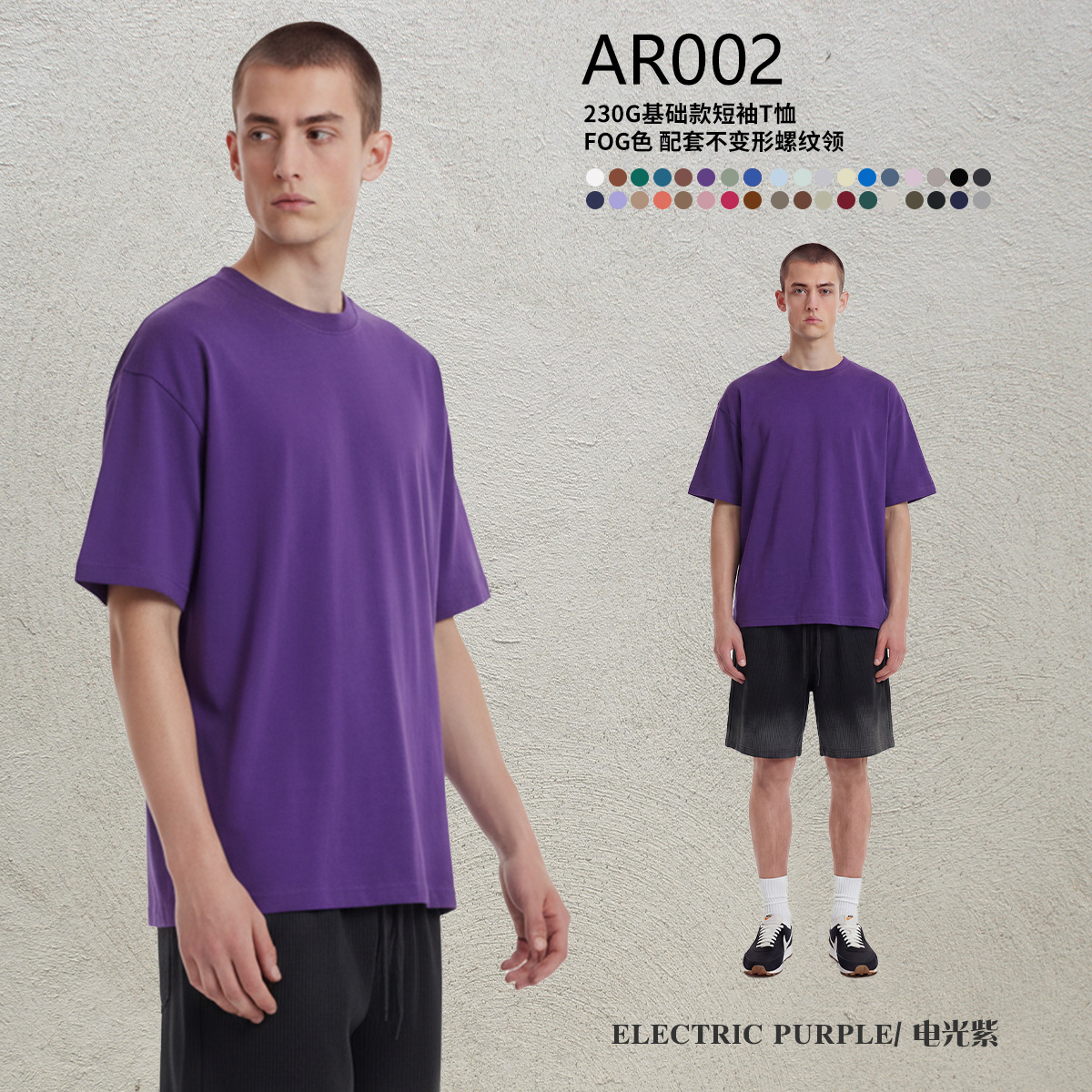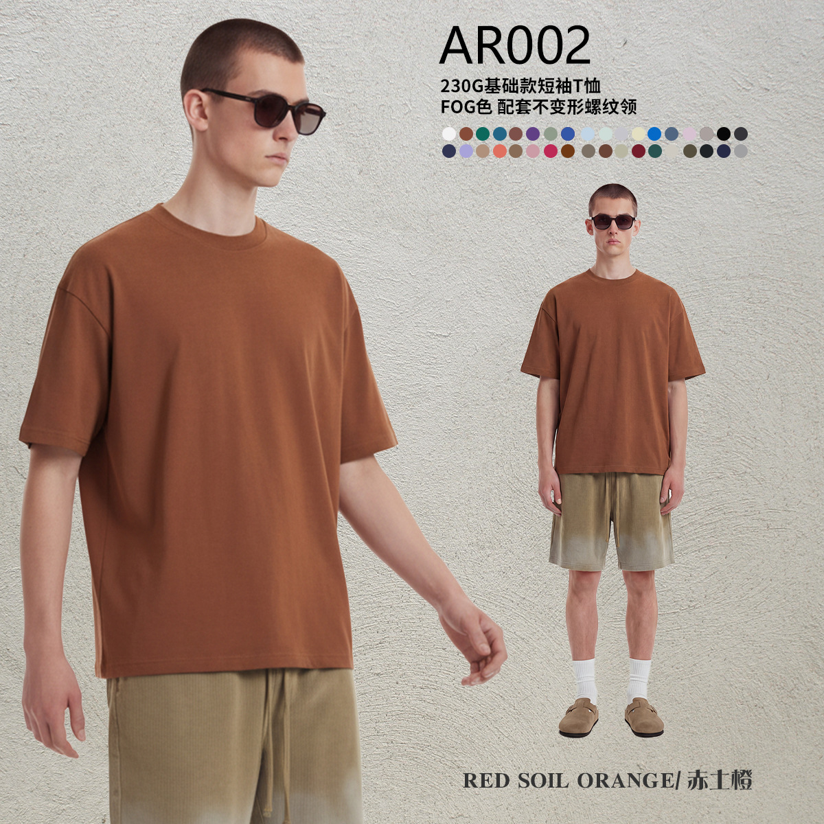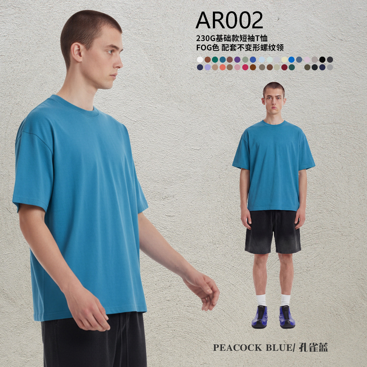 AR 대형 남성 유럽과 미국의 유행 브랜드 230G 이중 원사 순면 항균 반팔 남성 티셔츠 단색 빈 남성 루즈 티셔츠