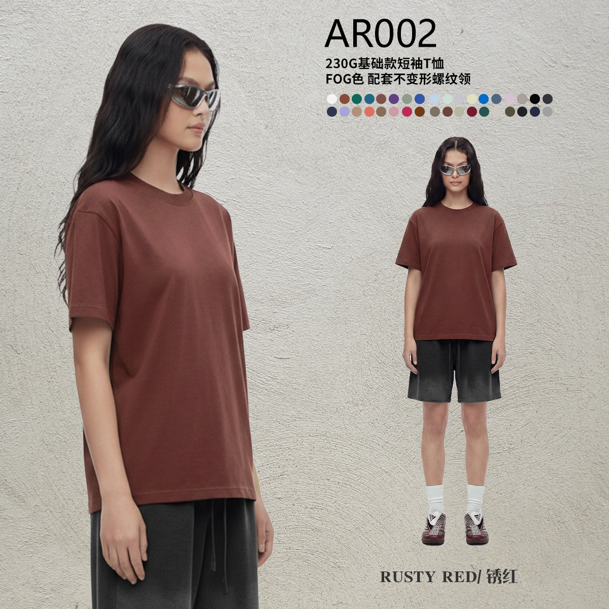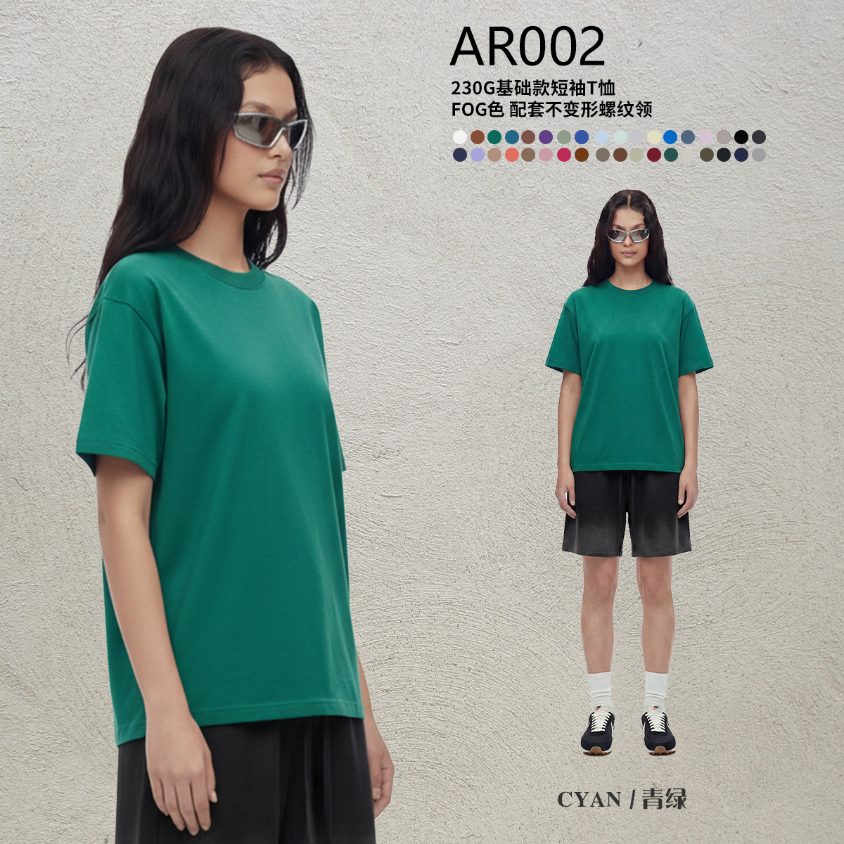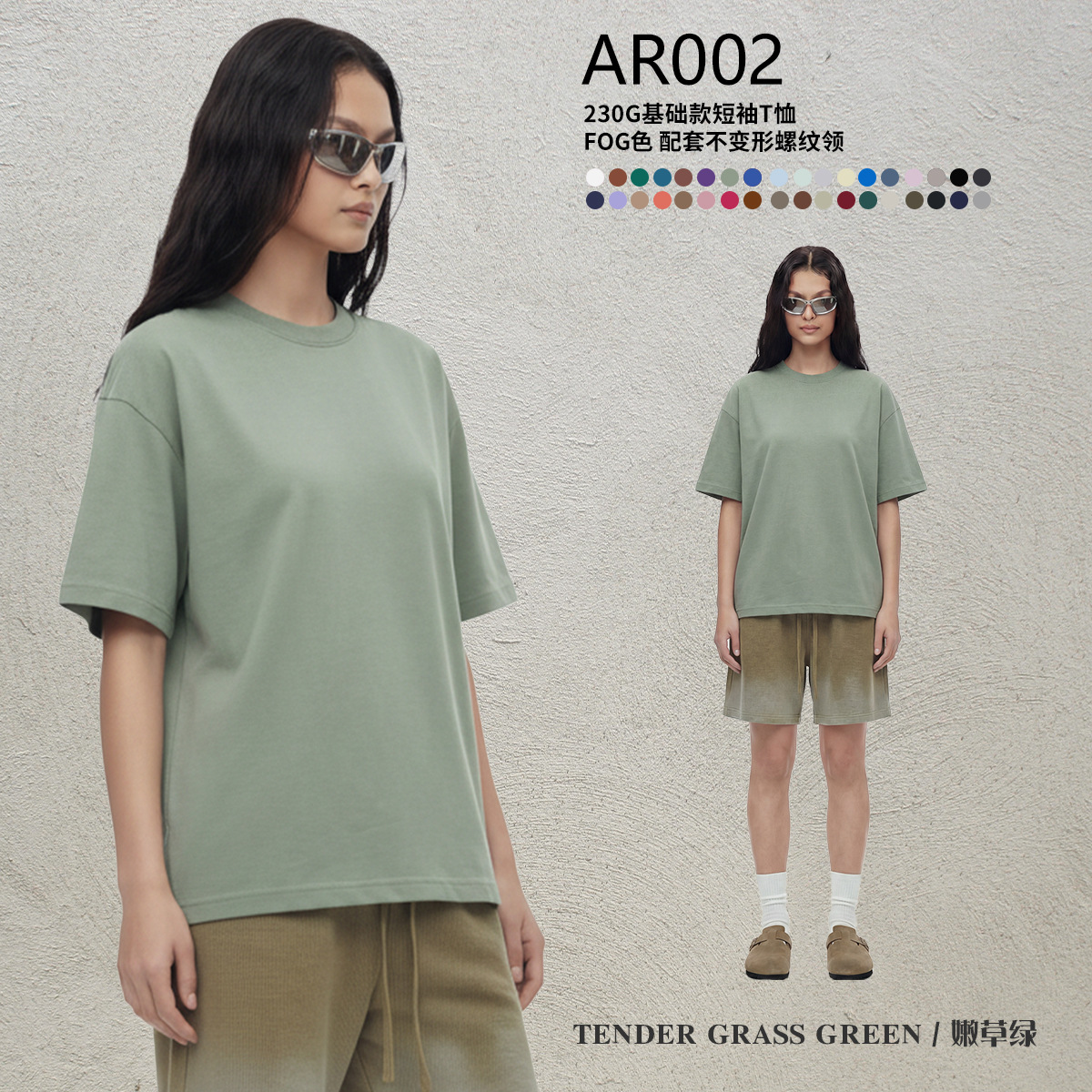 AR 대형 남성 유럽과 미국의 유행 브랜드 230G 이중 원사 순면 항균 반팔 남성 티셔츠 단색 빈 남성 루즈 티셔츠