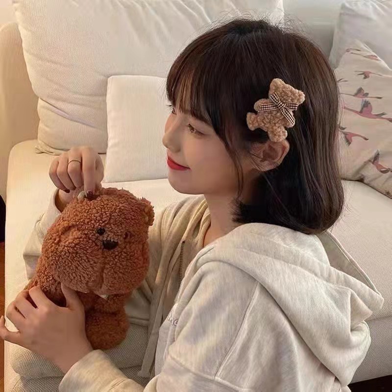 가을과 겨울 새로운 양고기 헤어 클립 인터넷 연예인 귀여운 나비 넥타이 곰 헤어 클립 소녀의 심장 앞머리 클립 사이드 클립 모자 착용 여성스토어 가기