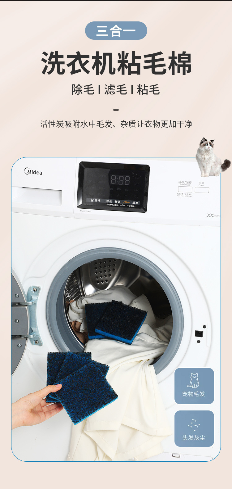 세탁기 스티커 머리 스폰지 드럼 제모 머리 흡입 면 고양이 제모 볼 클리너 스티커 머리 스폰지