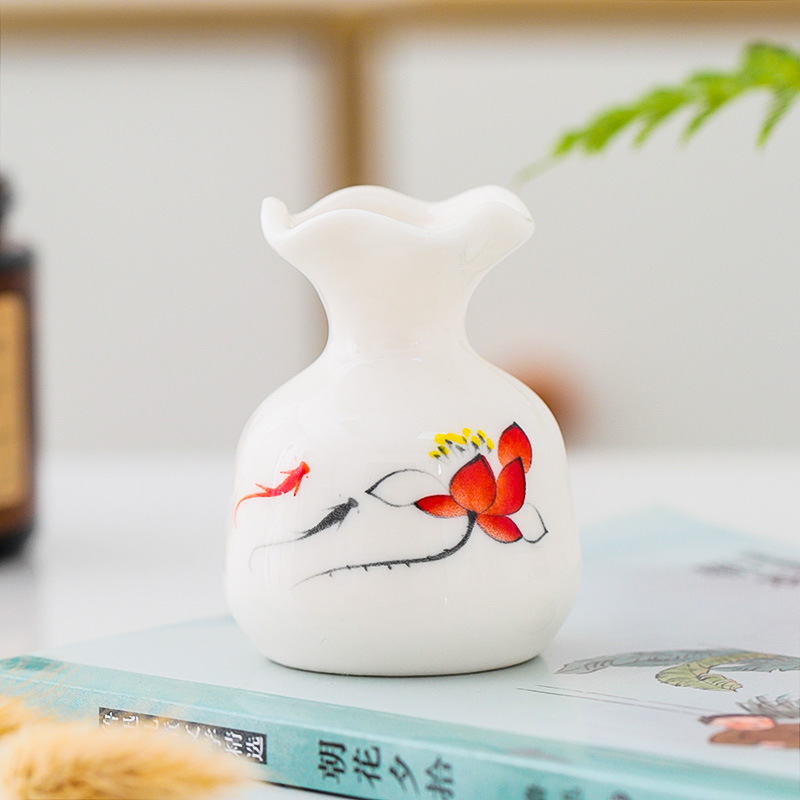 손으로 그린 미니 작은 꽃병 장식품 수경 녹색 식물 도자기 도구 말린 꽃 삽입 부티크 차 테이블 데스크탑 장식