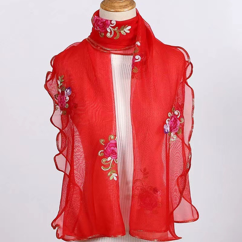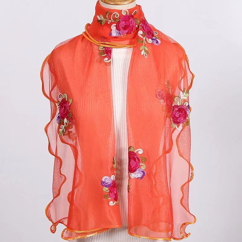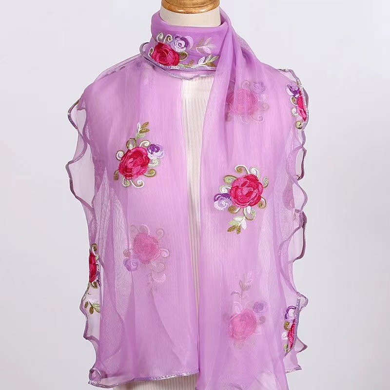 자수 로즈 스카프 가을과 겨울 새로운 자수 꽃 스카프 여성의 긴 모든 매치 댄싱 더블 레이어 어머니 스카프 여성