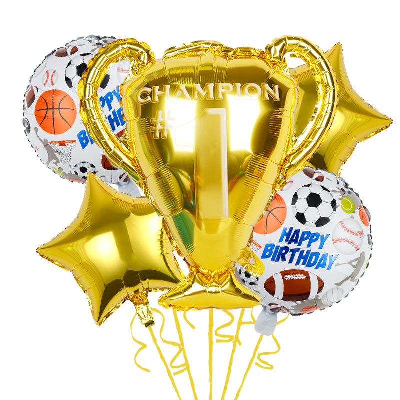 크로스 국경 황금 트로피 풍선 세트 축구 블루 볼 배구 스포츠 테마 파티 축하 생일 장식 풍선스토어 가기