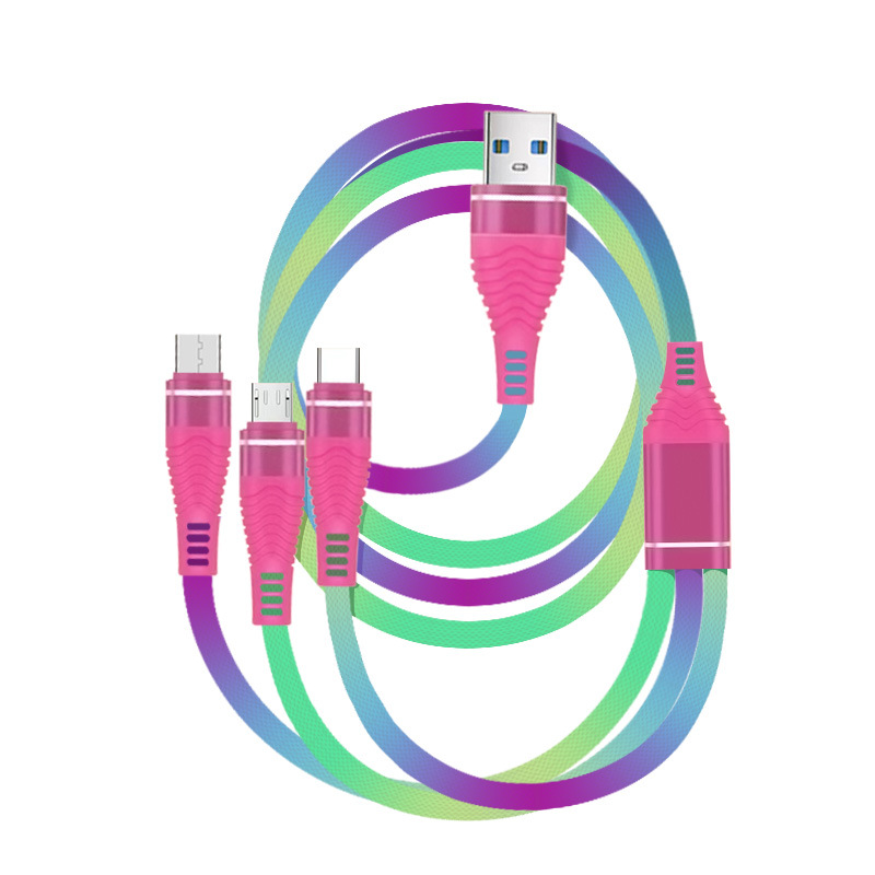 【产品名称】:彩虹炫染布艺 1拖3USB手机数据线