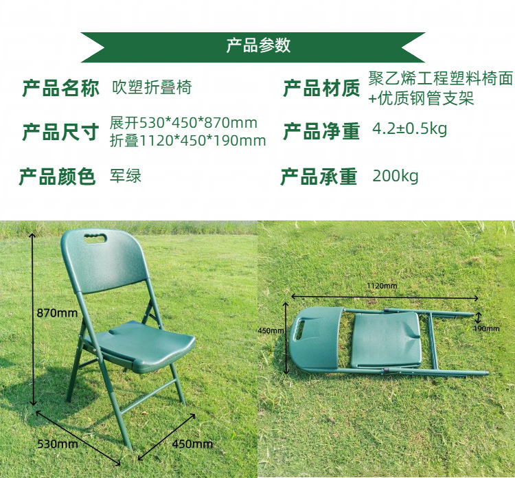 공장 야외 접이식 의자 훈련 식탁 그린 캠핑 경량 휴대용 회의 의자 작업 의자 블로우 몰드 의자