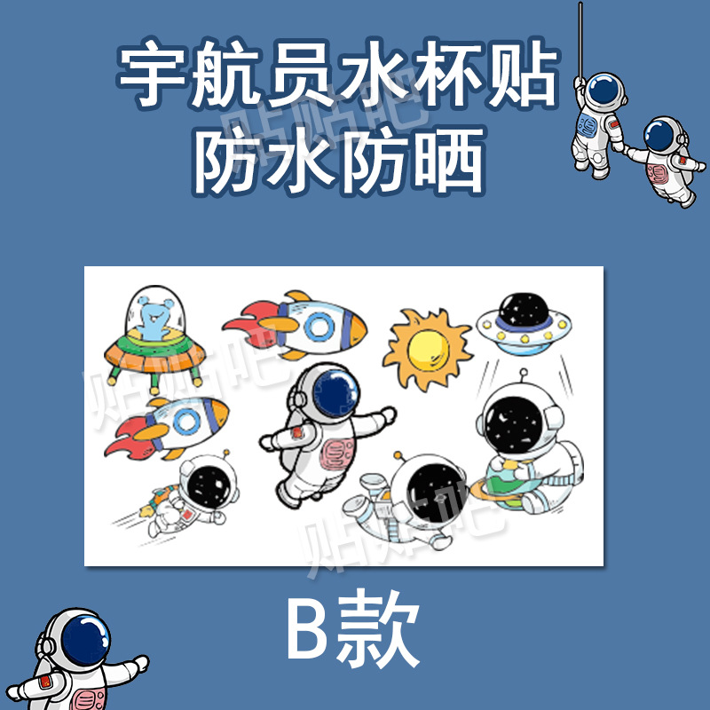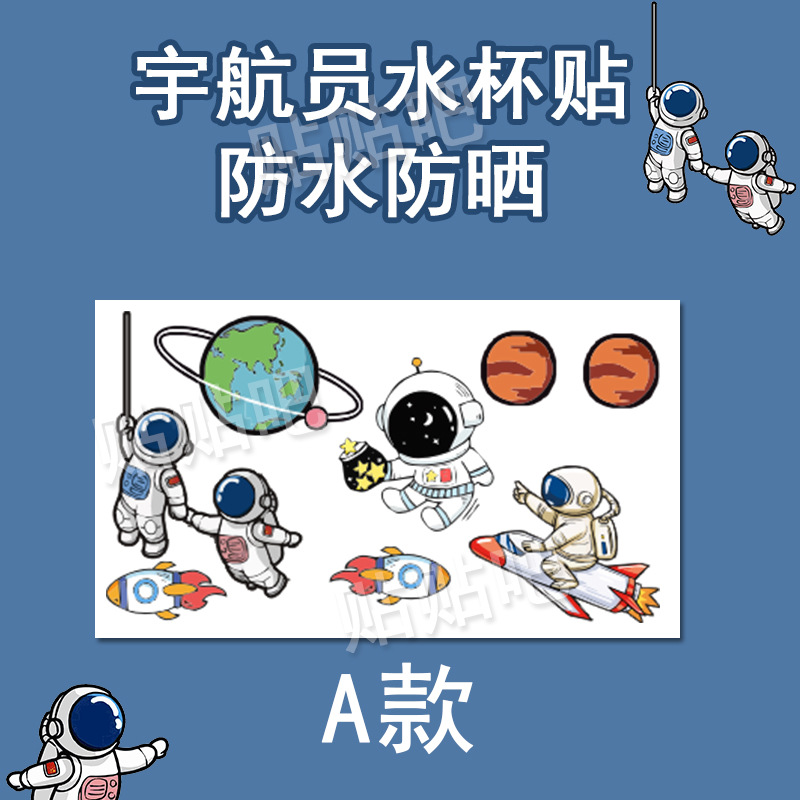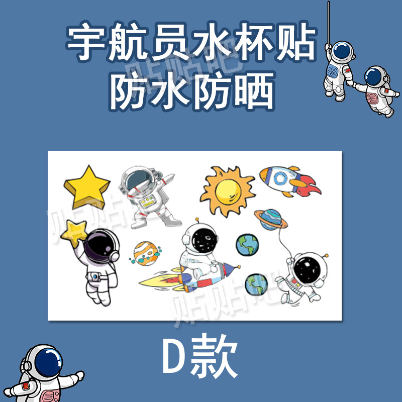 우주 비행사 만화 귀여운 스티커 물 컵 장식 스티커 우주 비행사 창조적 인 물병 보온병 보관함 스티커 방수