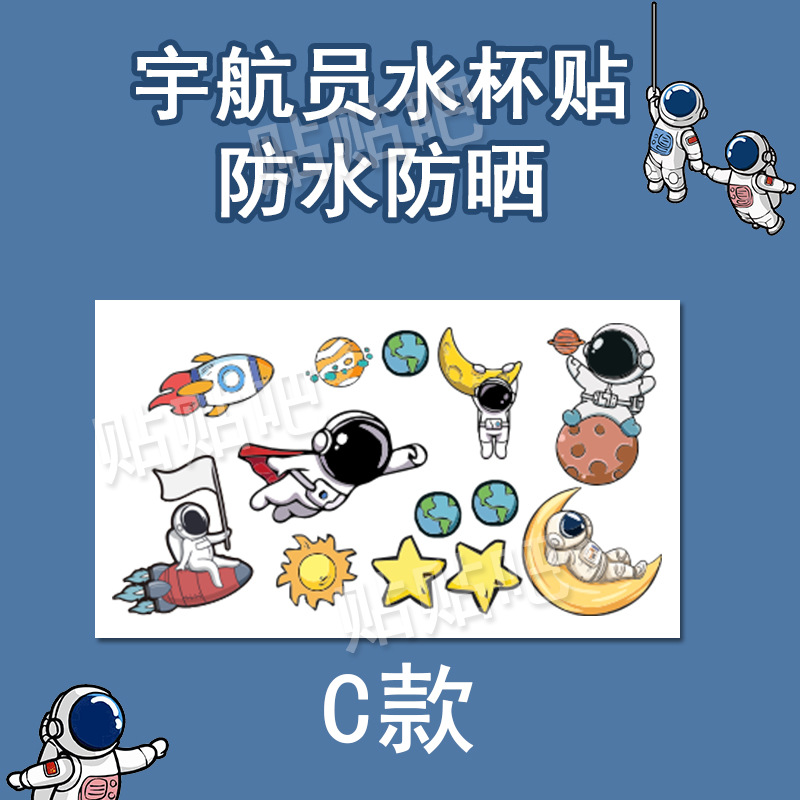 우주 비행사 만화 귀여운 스티커 물 컵 장식 스티커 우주 비행사 창조적 인 물병 보온병 보관함 스티커 방수스토어 가기