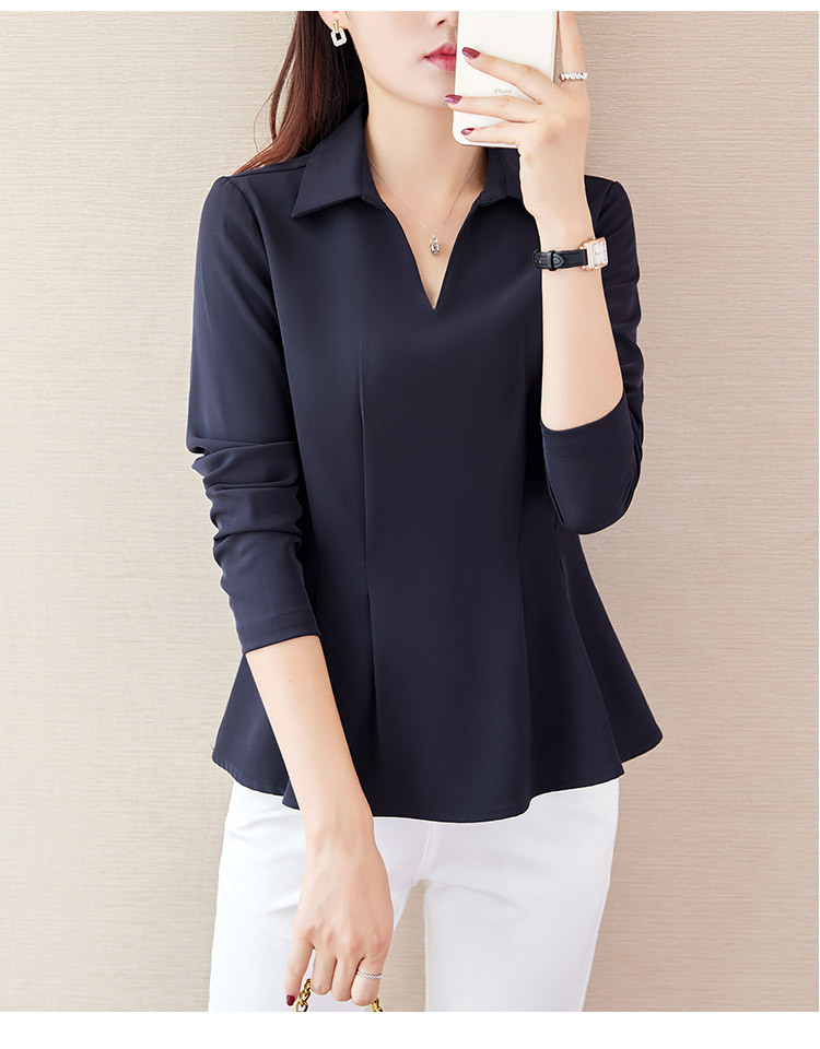 775 가을 신상 셔츠 칼라 확대 플러스 사이즈 고급 여성복 A라인 셔츠 통통한 여성용 배 가리기 상의