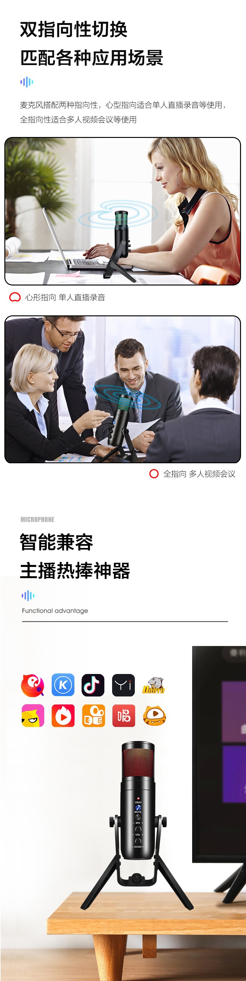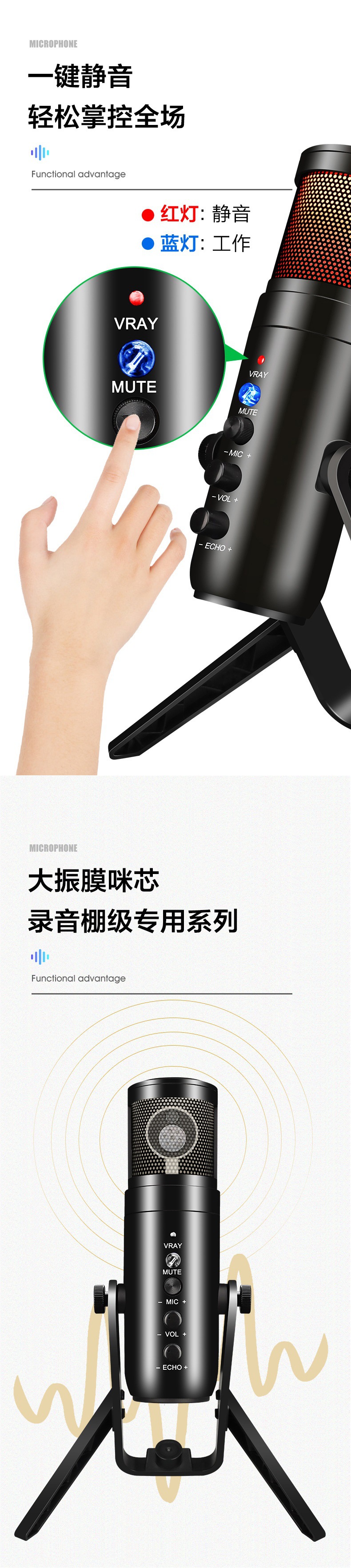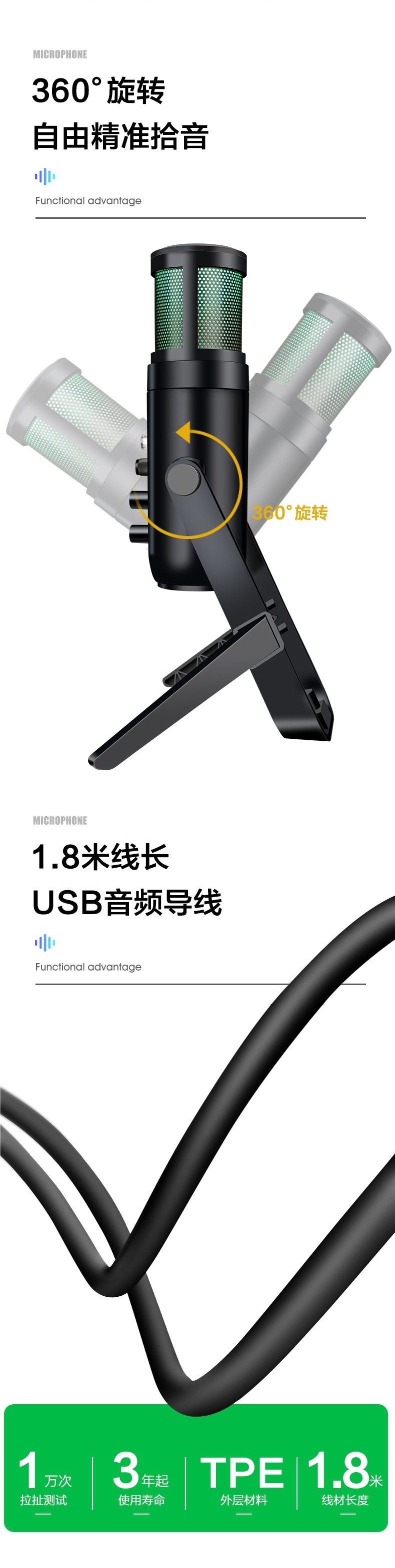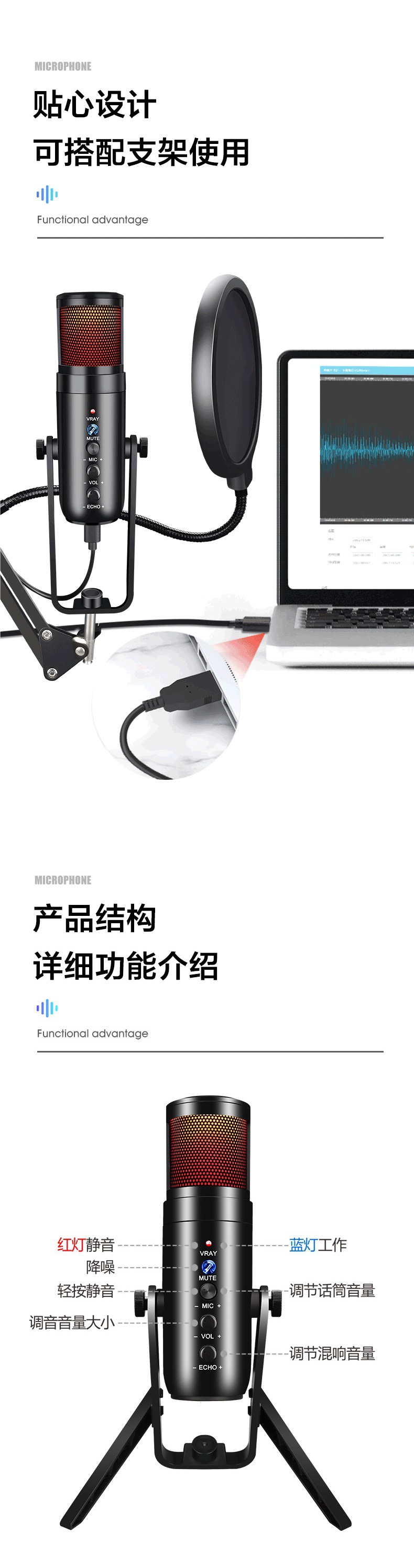 제조업체 개인 모델 USB 커패시터 RGB 마이크 노래방 라이브 게임 컴퓨터 음성 회의 녹음 휴대 전화 마이크