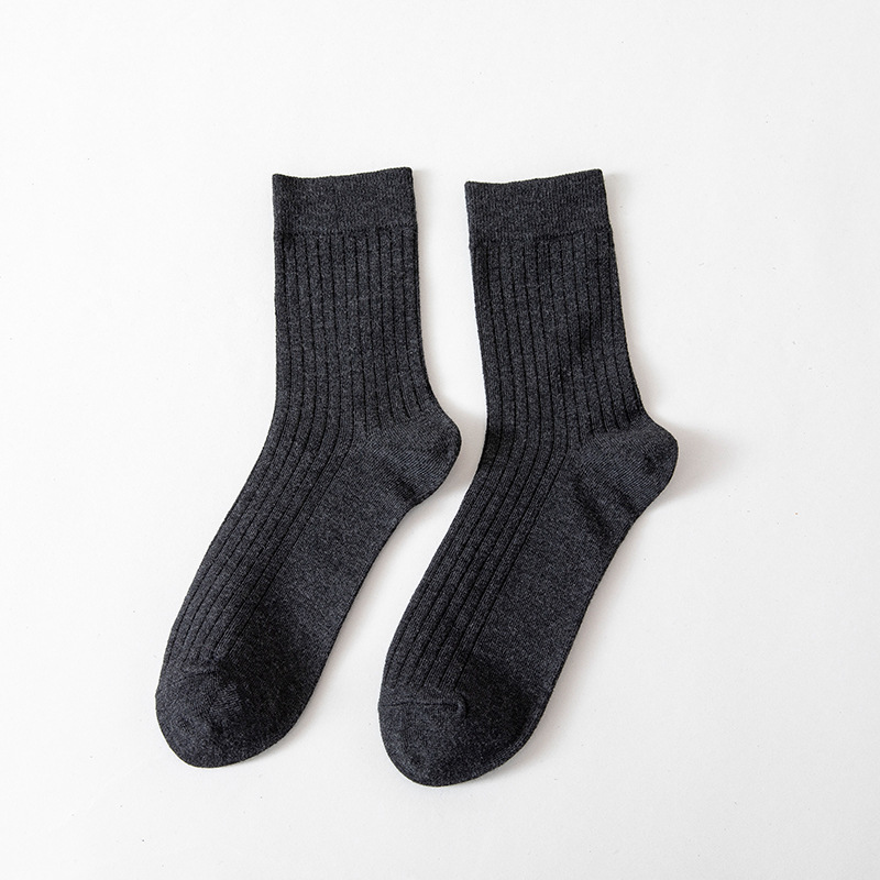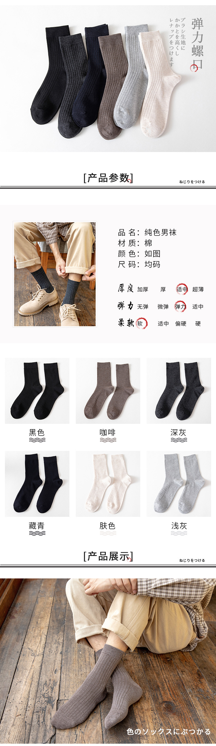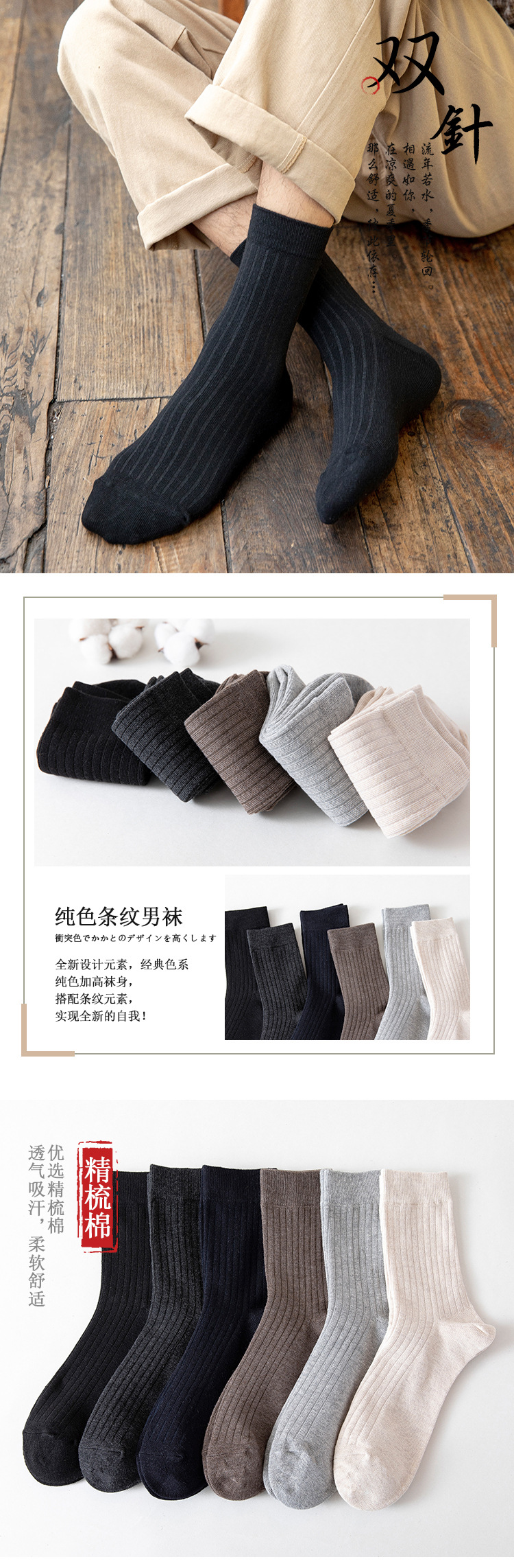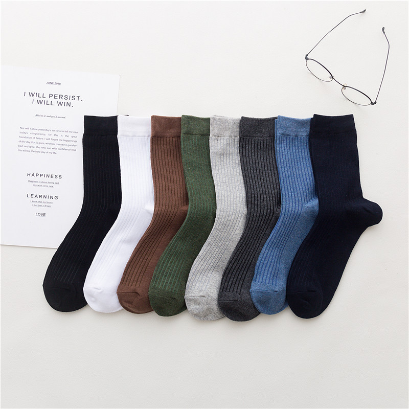 봄, 가을, 겨울용 두꺼운 단색 면 세로 줄무늬 남성 양말, 남성용 중목 양말, 클래식 캐주얼 비즈니스 편안한 면 양말스토어 가기