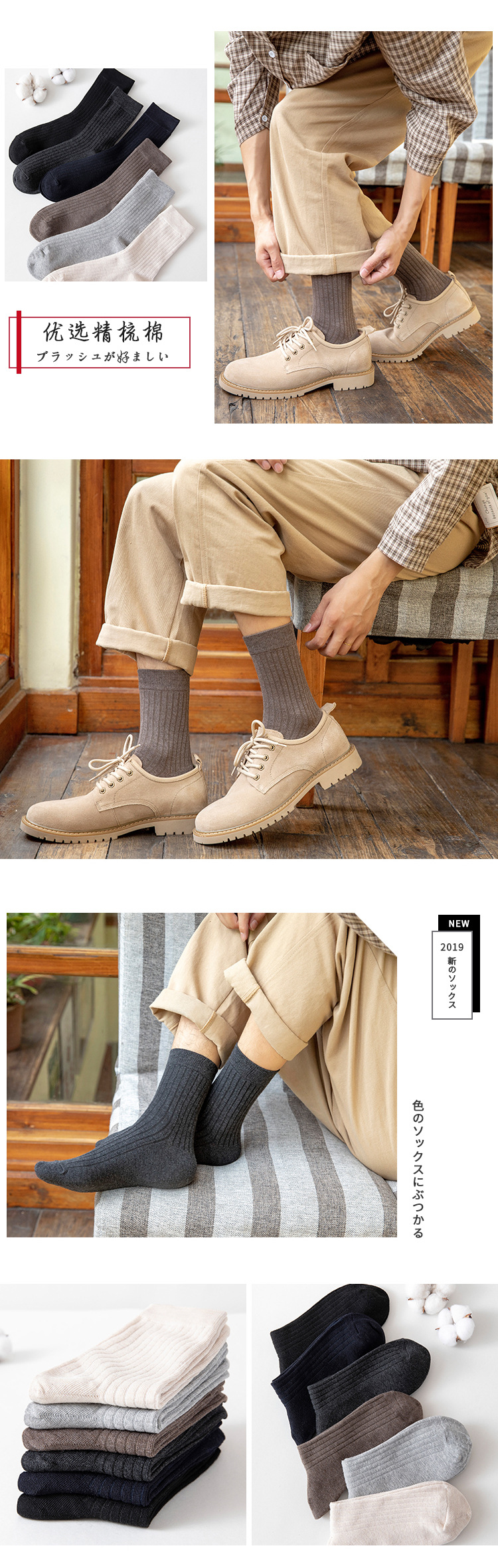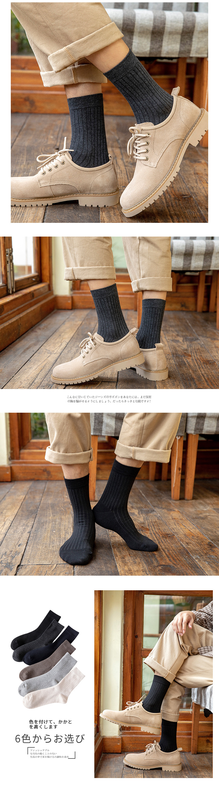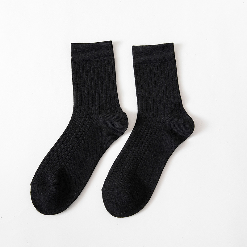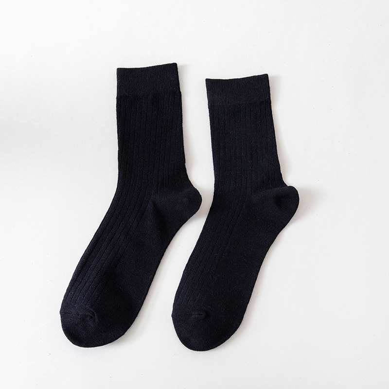 봄, 가을, 겨울용 두꺼운 단색 면 세로 줄무늬 남성 양말, 남성용 중목 양말, 클래식 캐주얼 비즈니스 편안한 면 양말스토어 가기