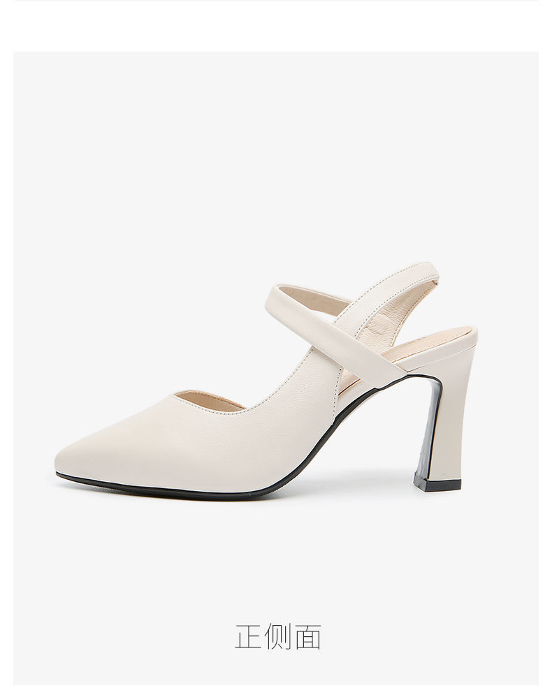 우아한 샌들 여성 여름 2023 새로운 스타일 두꺼운 굽 중간 굽 부드러운 가죽 원 발가락 의상 여성 신발 하이힐