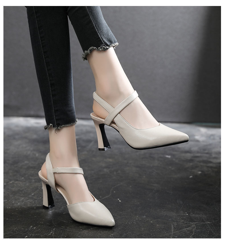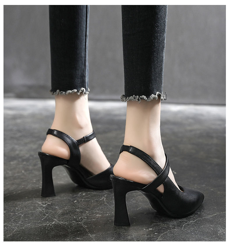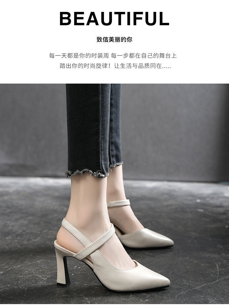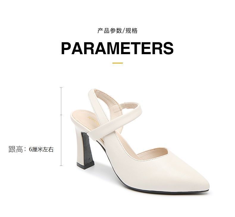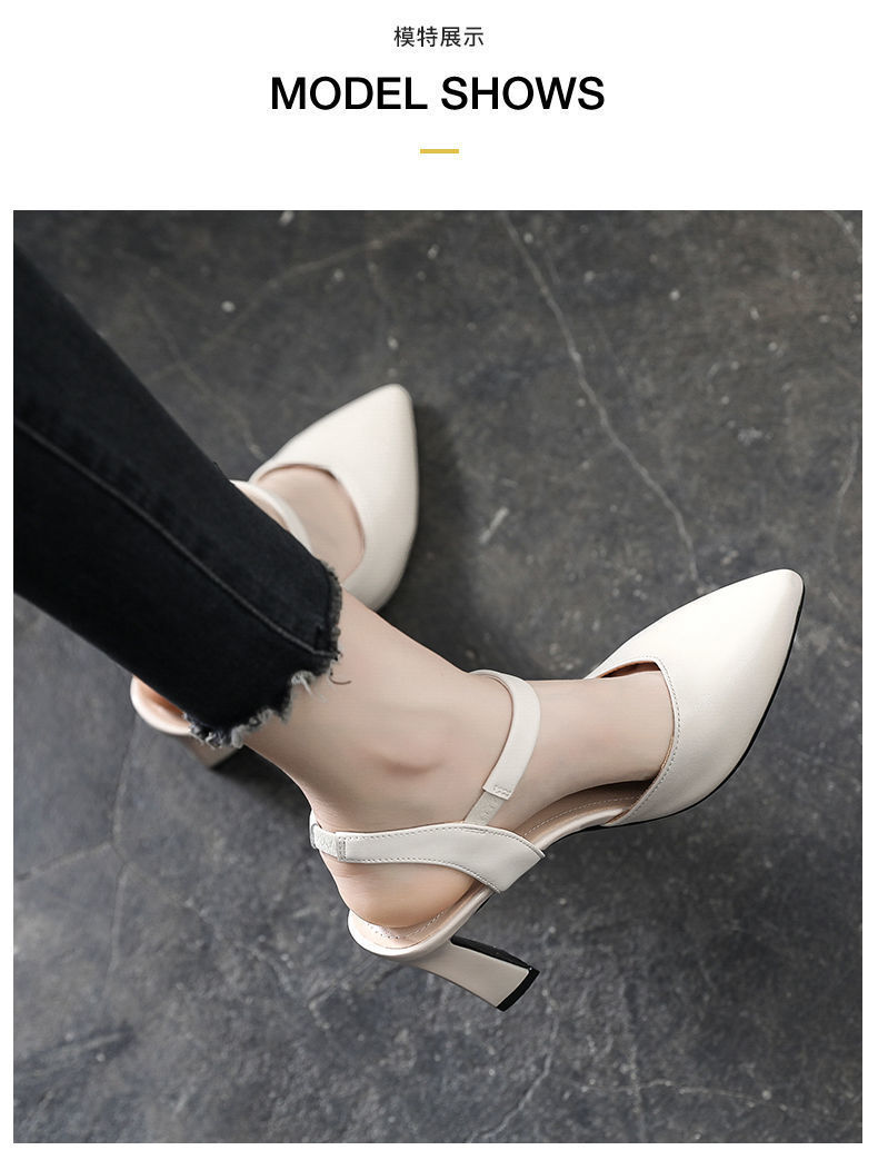 우아한 샌들 여성 여름 2023 새로운 스타일 두꺼운 굽 중간 굽 부드러운 가죽 원 발가락 의상 여성 신발 하이힐스토어 가기