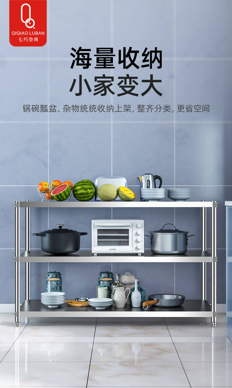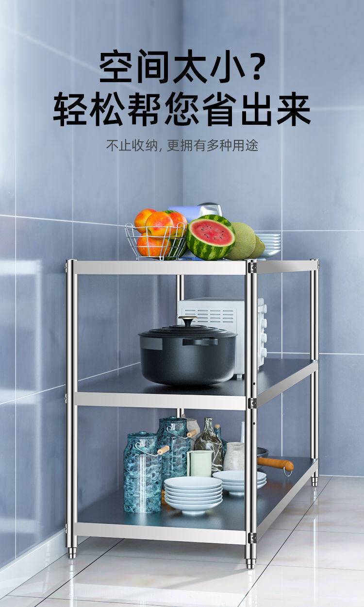 스테인레스 스틸 작업대 마감 캐비닛 냄비 그릇 선반 보관 랙 야채 선반 가족 3 층 랙 그릇 랙 발코니스토어 가기