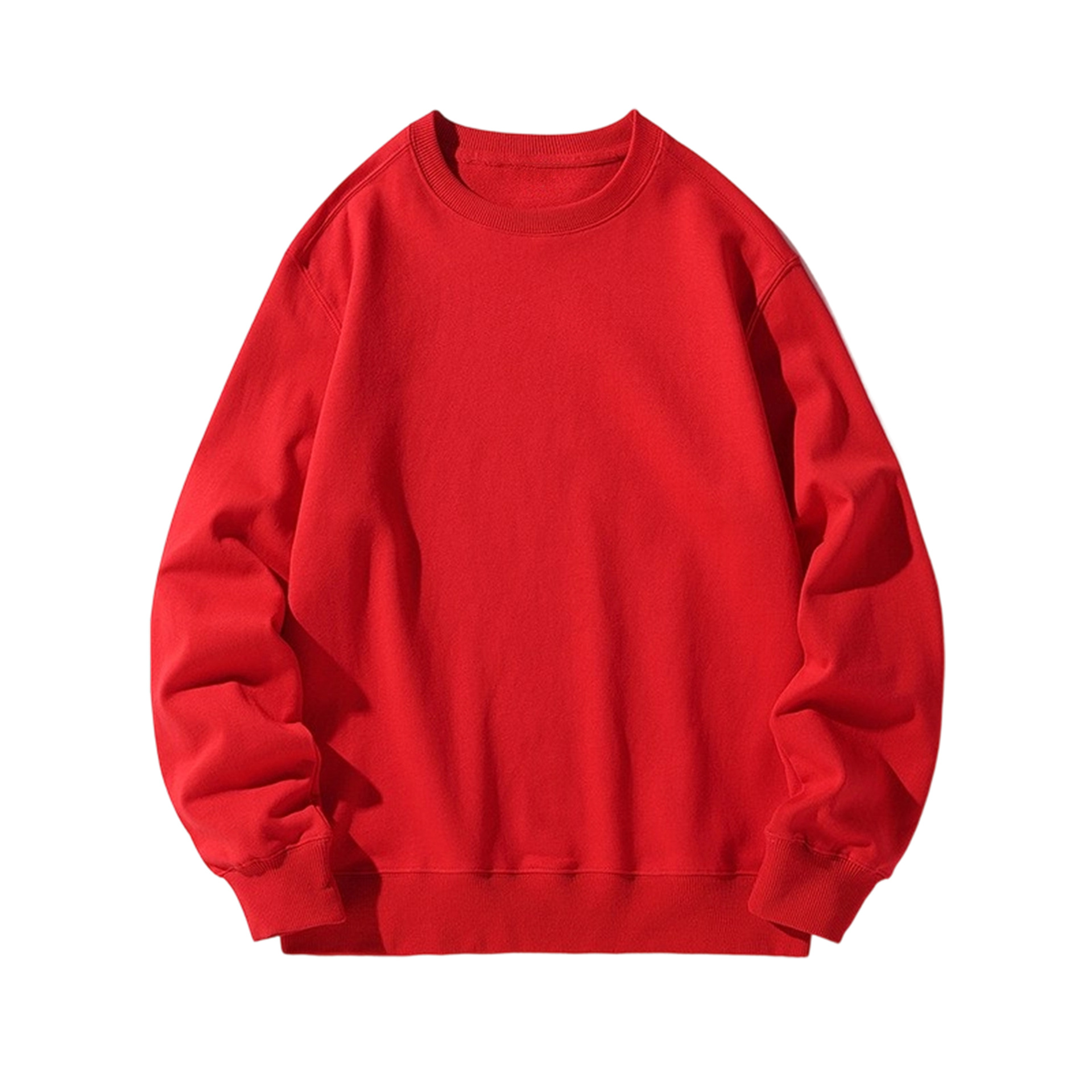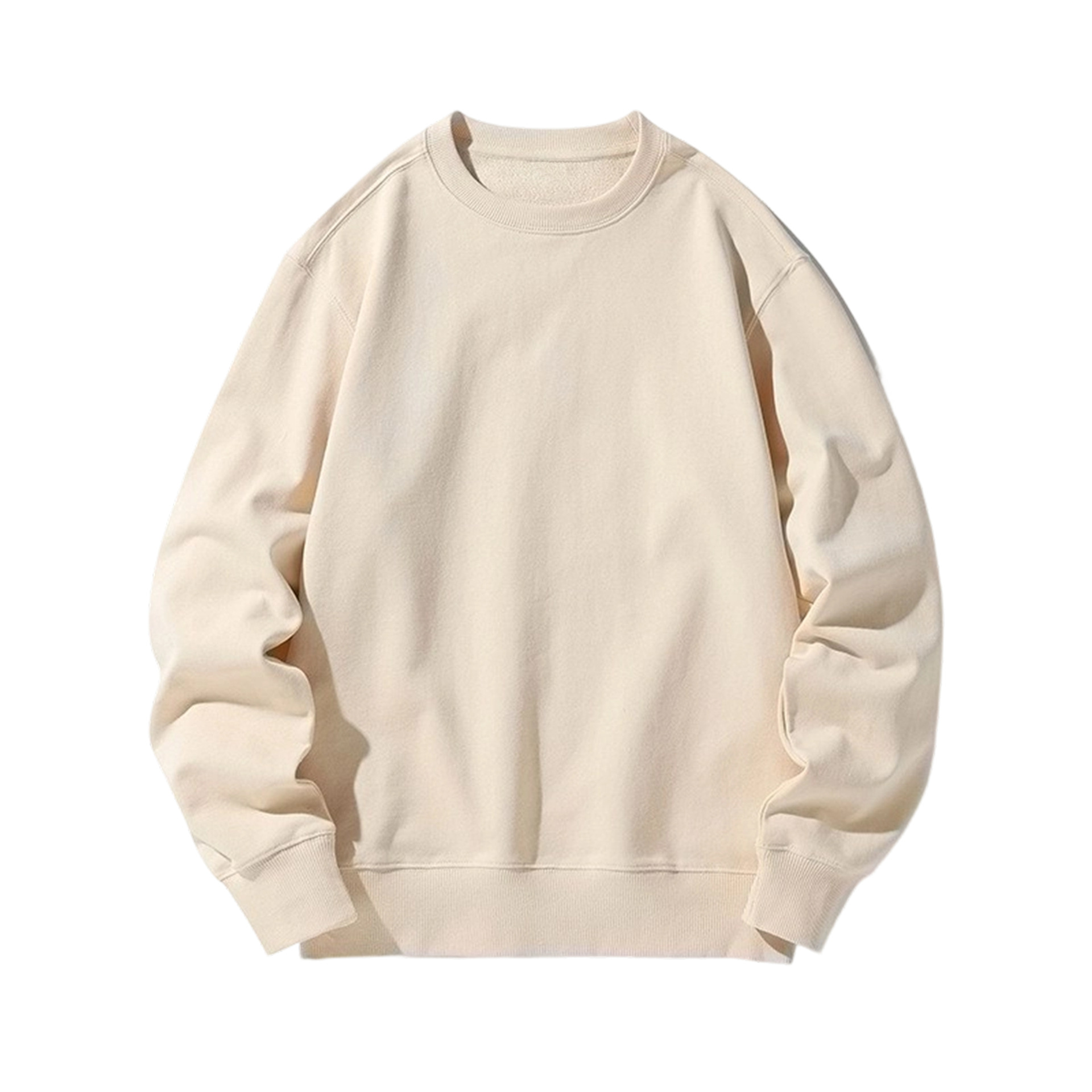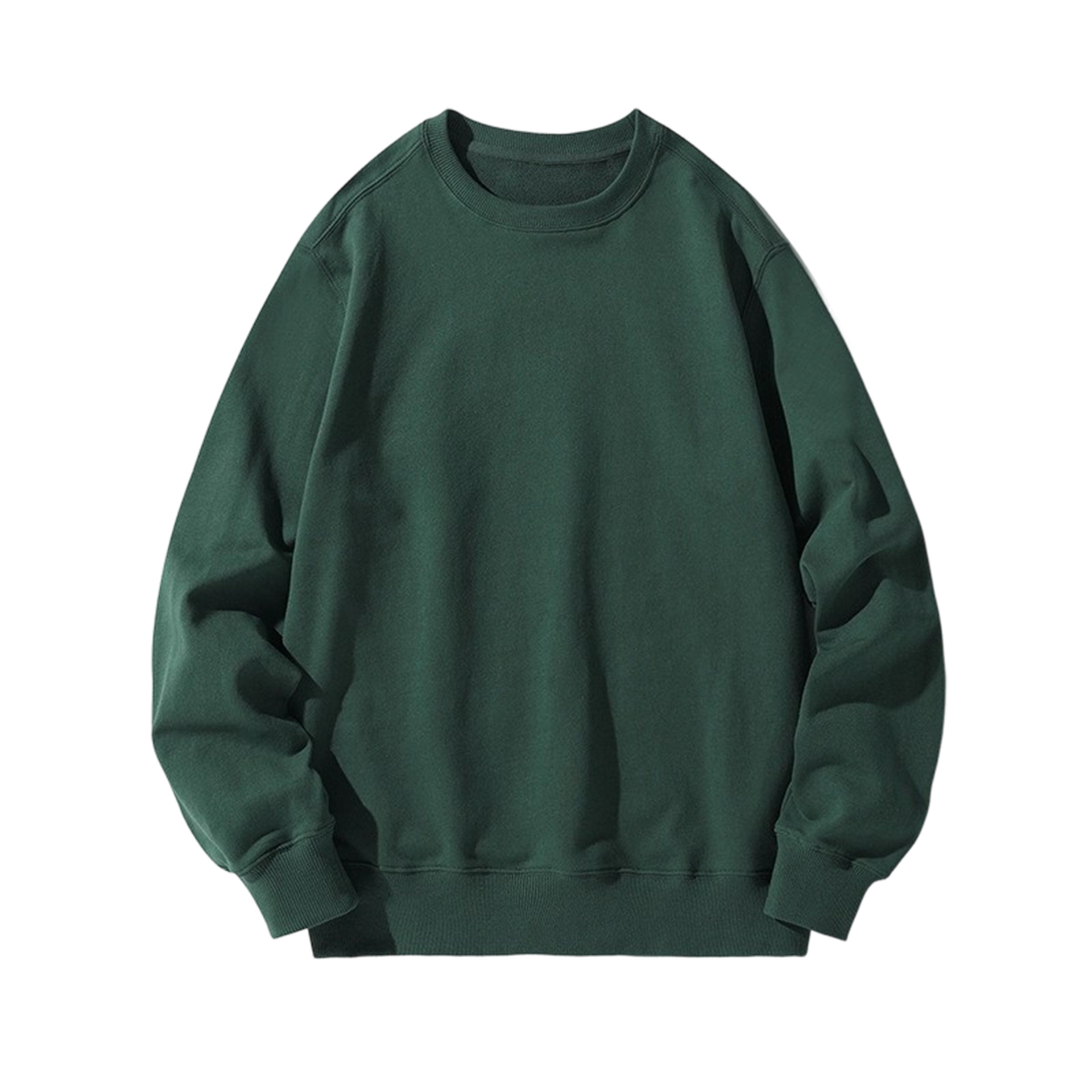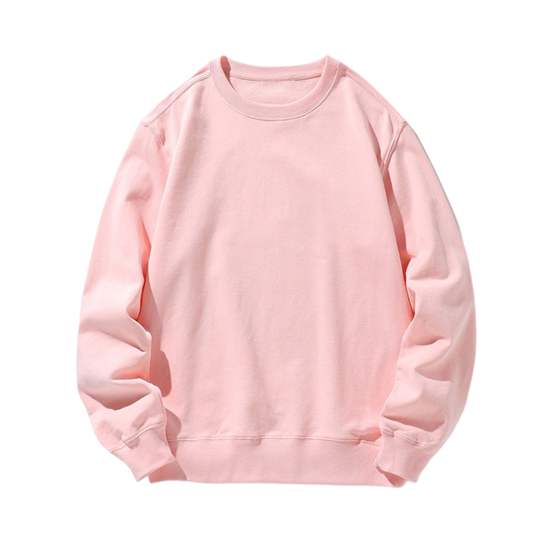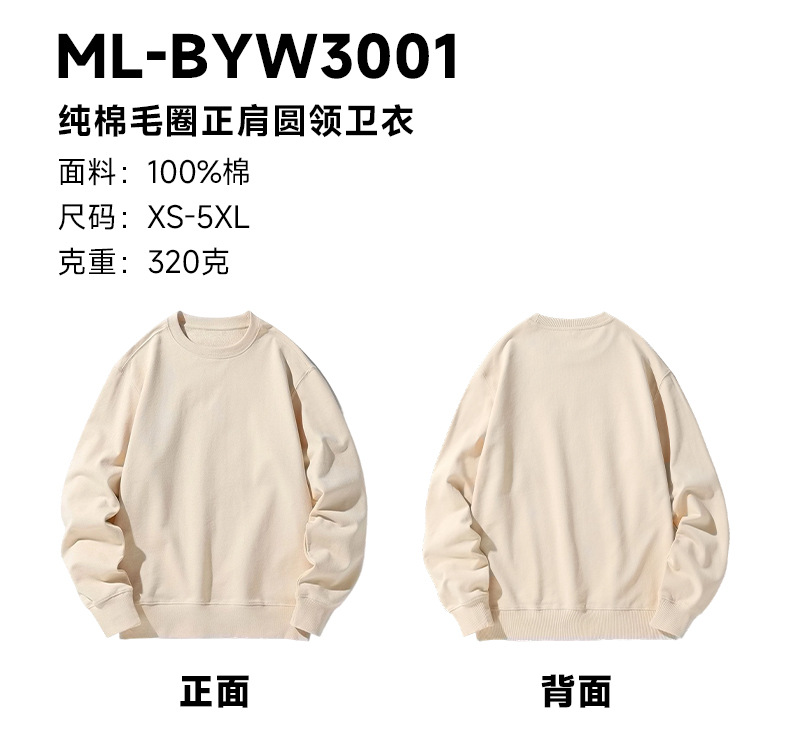 오른쪽 어깨 부분에 테리 원단의 라운드넥 스웨트셔츠, 순면 긴팔 교복/작업복, 무지 단색, 로고 인쇄/자수/직물 프린팅