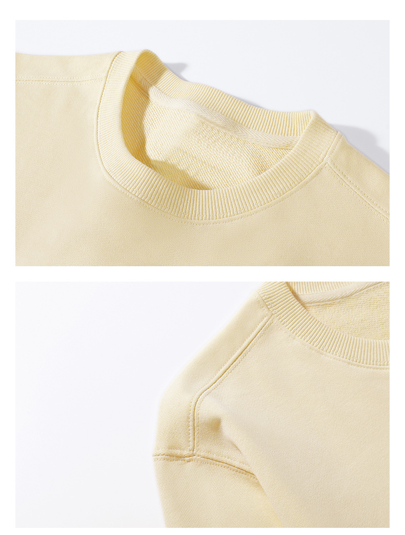 오른쪽 어깨 부분에 테리 원단의 라운드넥 스웨트셔츠, 순면 긴팔 교복/작업복, 무지 단색, 로고 인쇄/자수/직물 프린팅스토어 가기