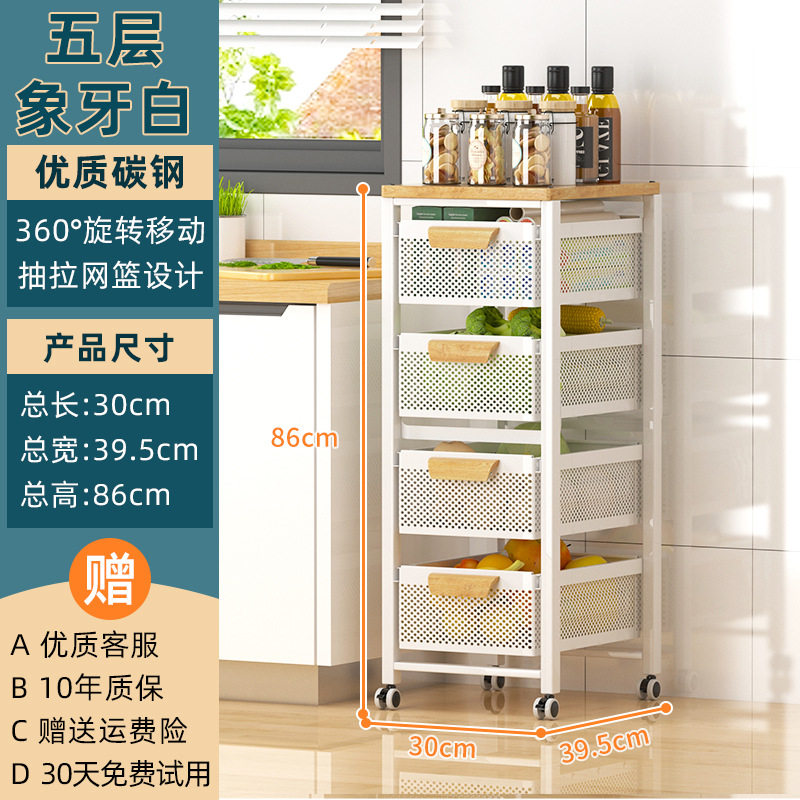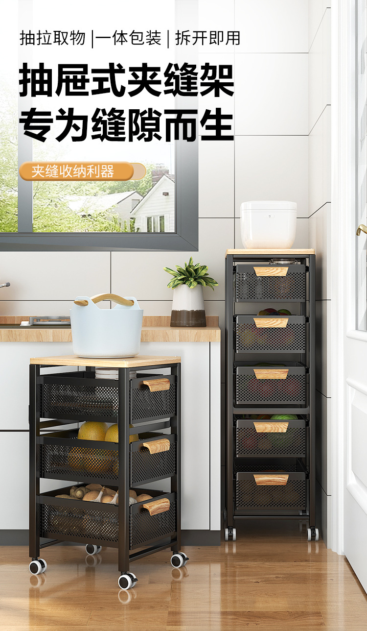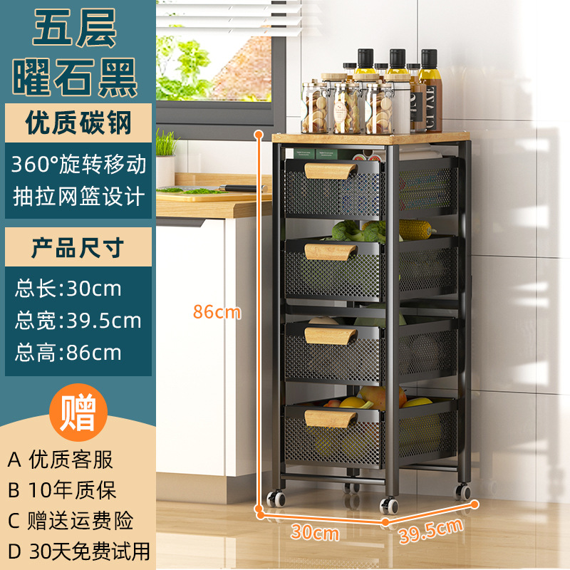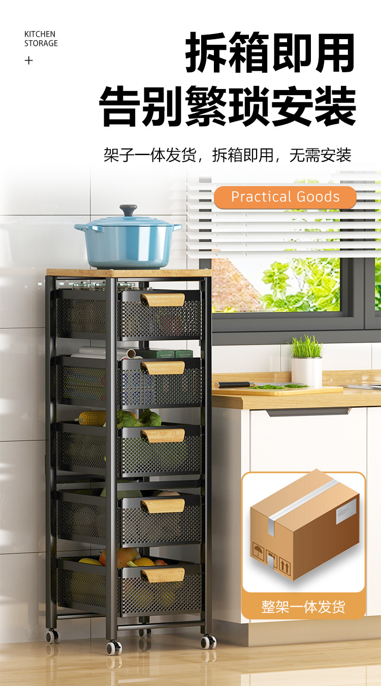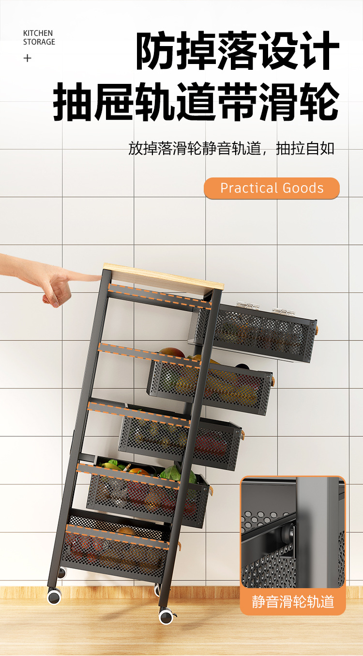 설치가 필요 없는 주방 수납선반, 바닥에 놓는 소형 카트, 과일 및 채소를 위한 다층 수납선반, 다기능스토어 가기