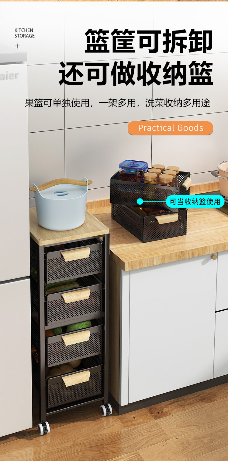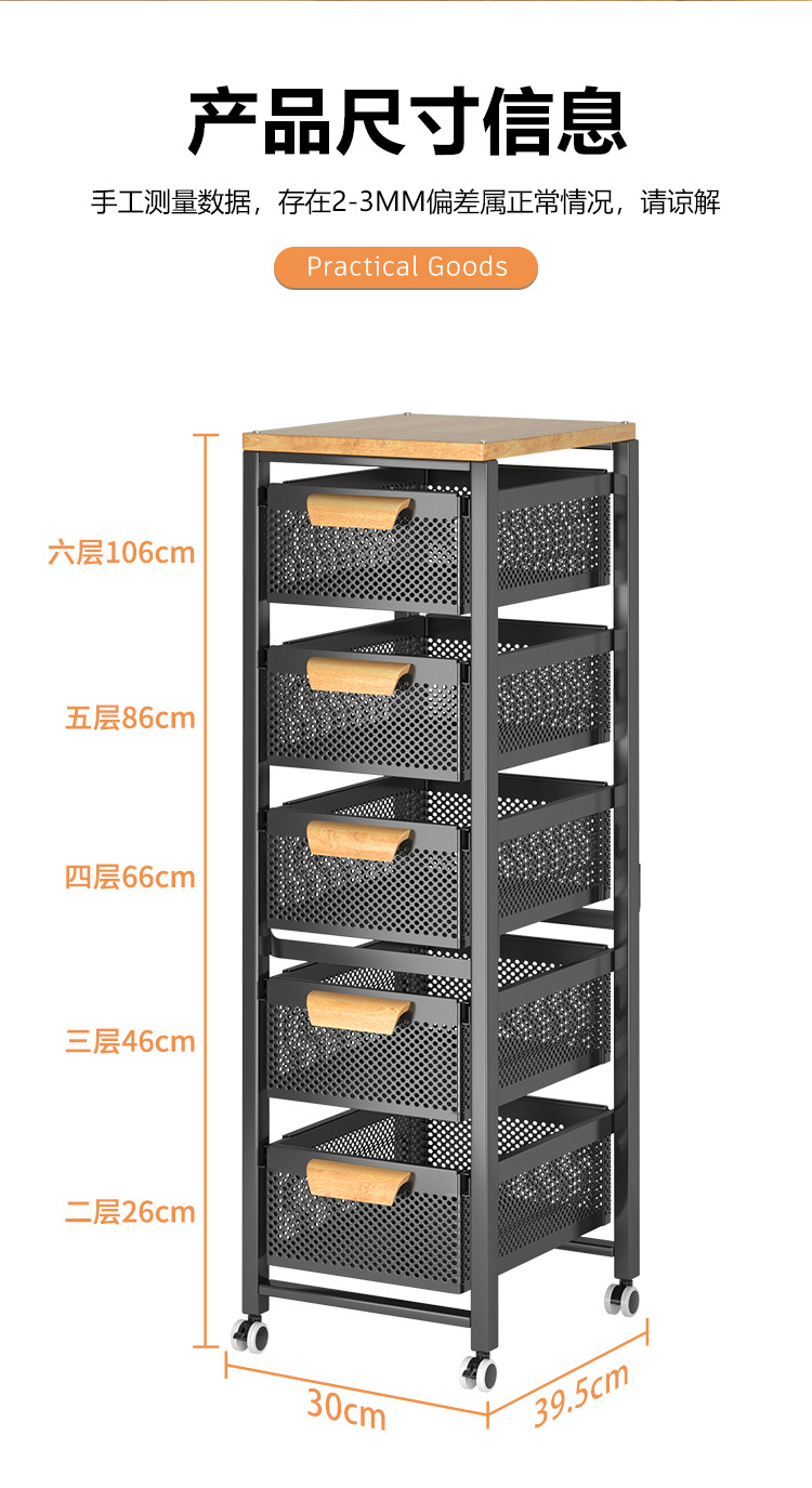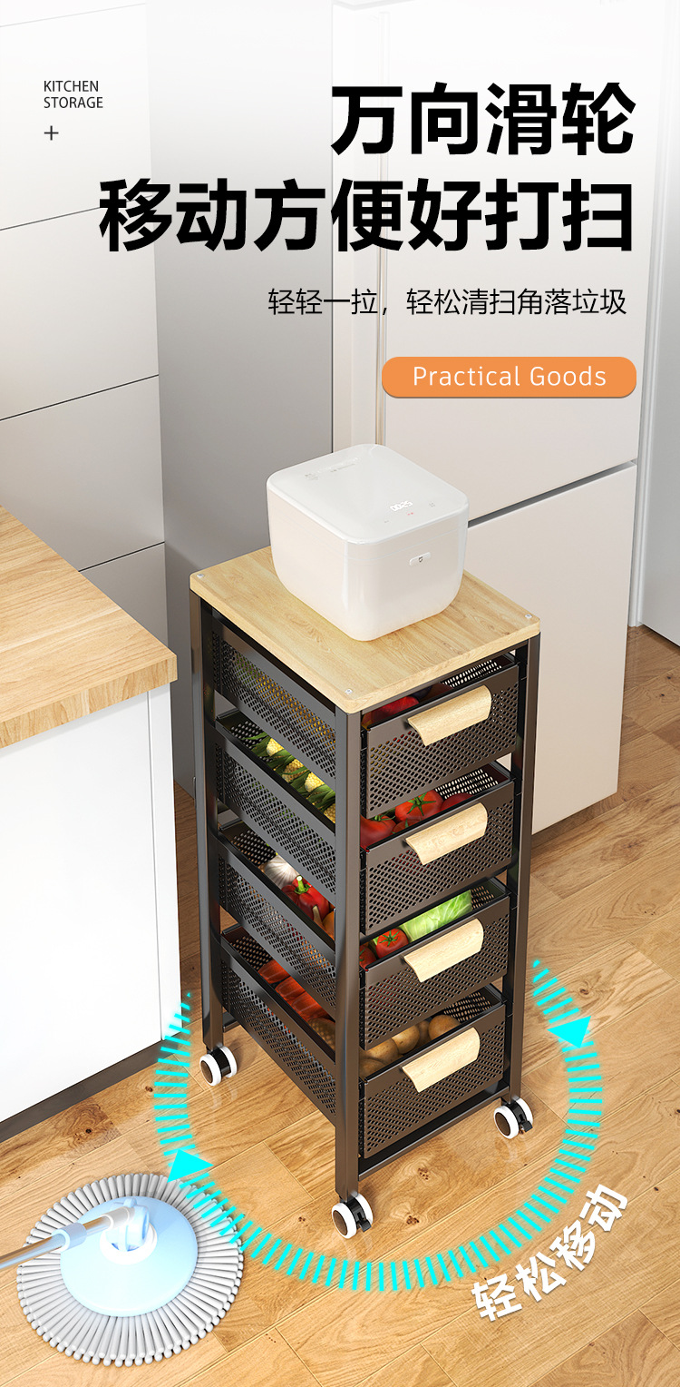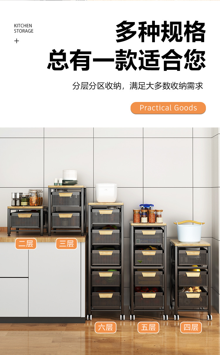 설치가 필요 없는 주방 수납선반, 바닥에 놓는 소형 카트, 과일 및 채소를 위한 다층 수납선반, 다기능스토어 가기