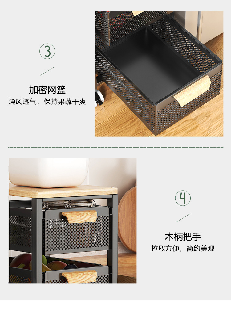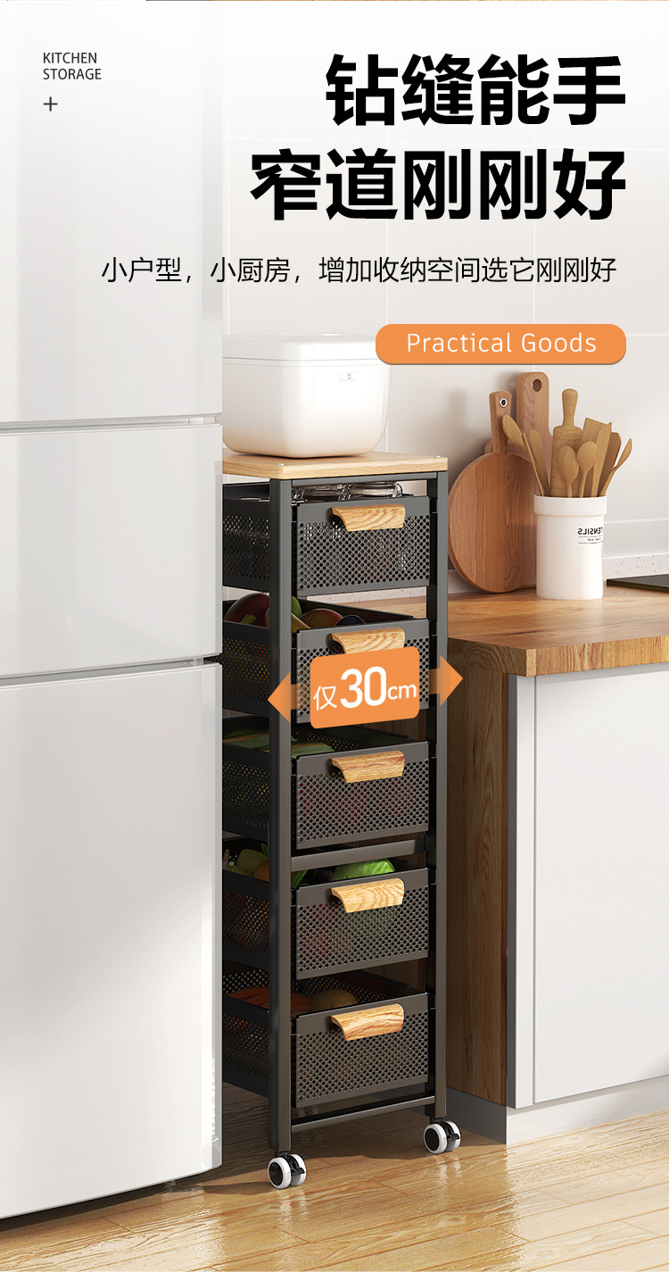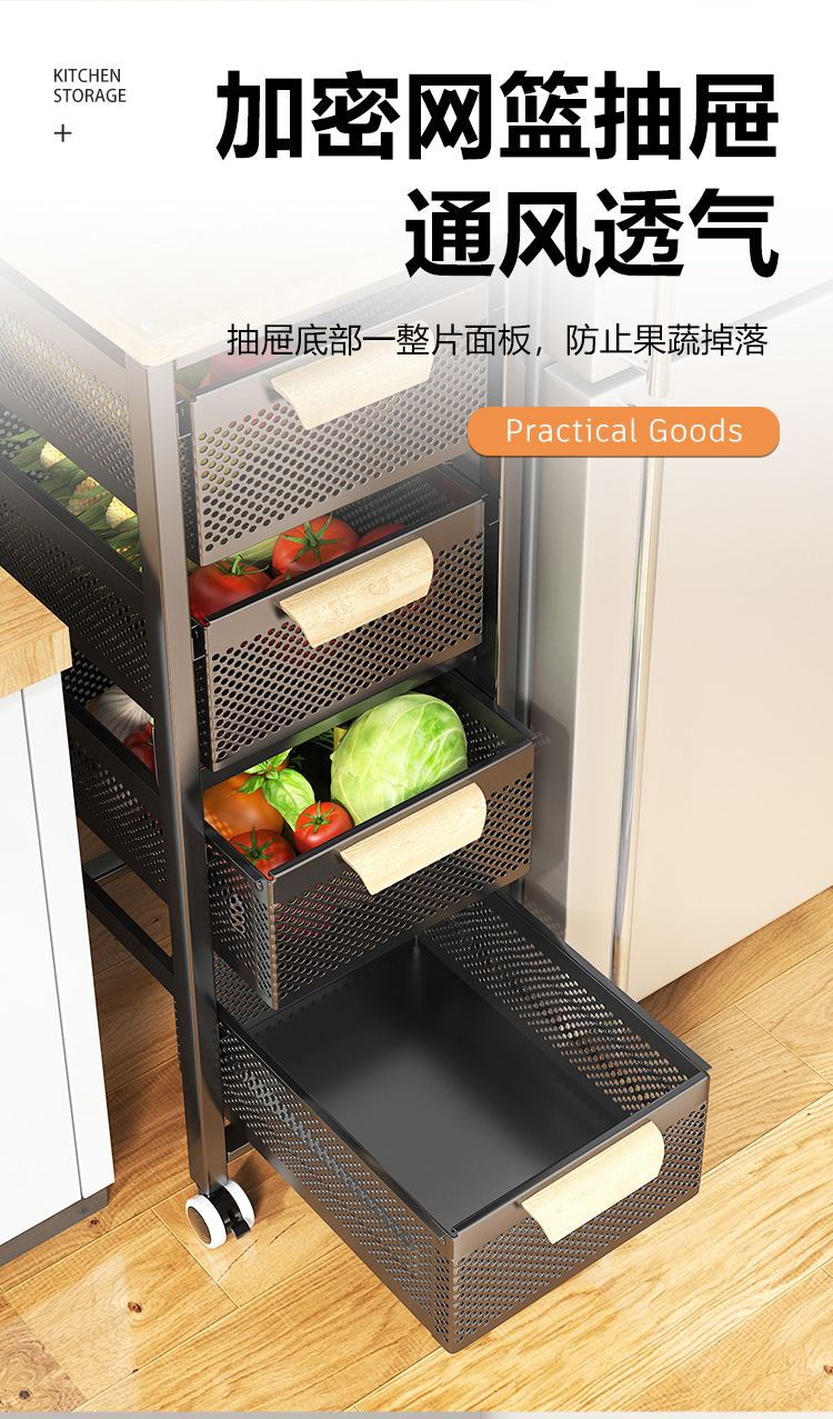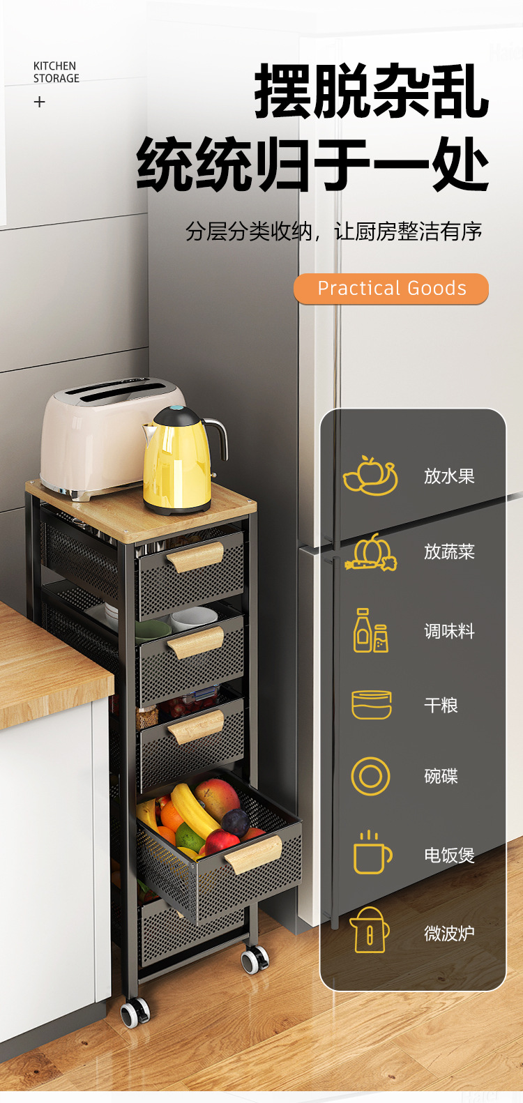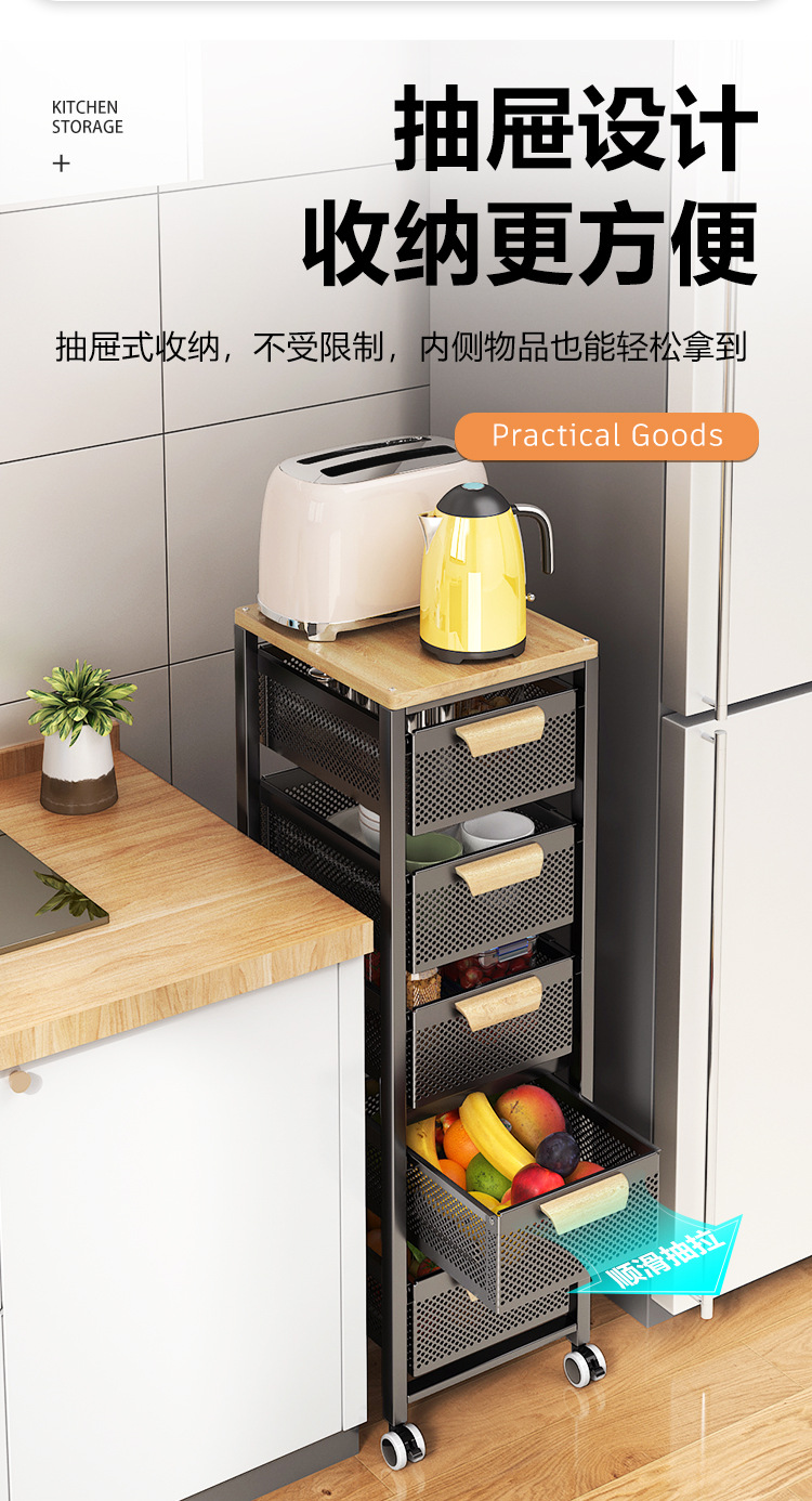설치가 필요 없는 주방 수납선반, 바닥에 놓는 소형 카트, 과일 및 채소를 위한 다층 수납선반, 다기능스토어 가기