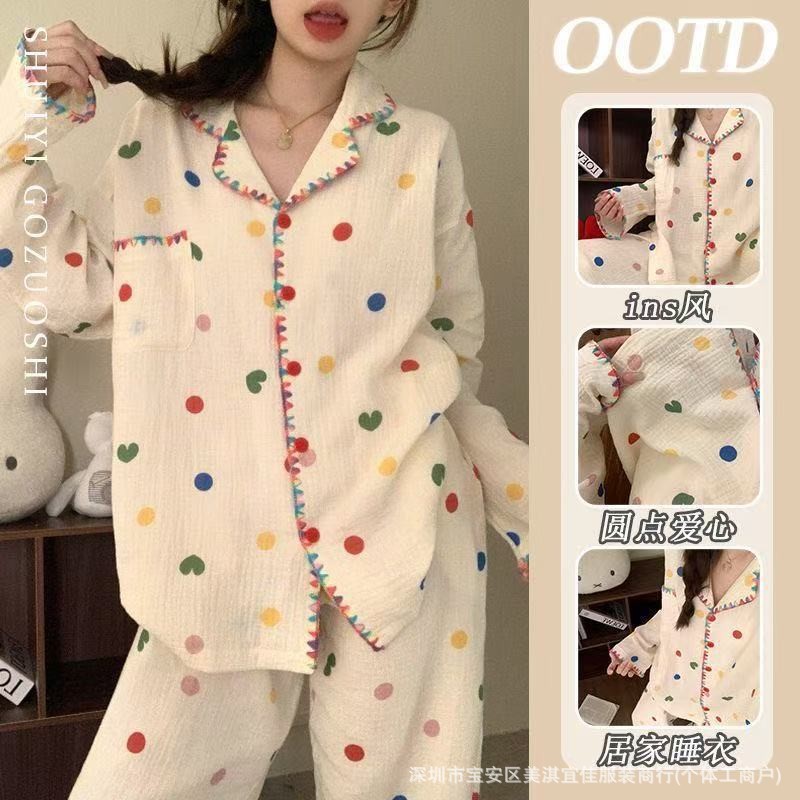 [긴팔 바지] 외국교역, 국경 간 한국 잠옷 여성 가디건 달콤한 일본식 봄과 가을스토어 가기