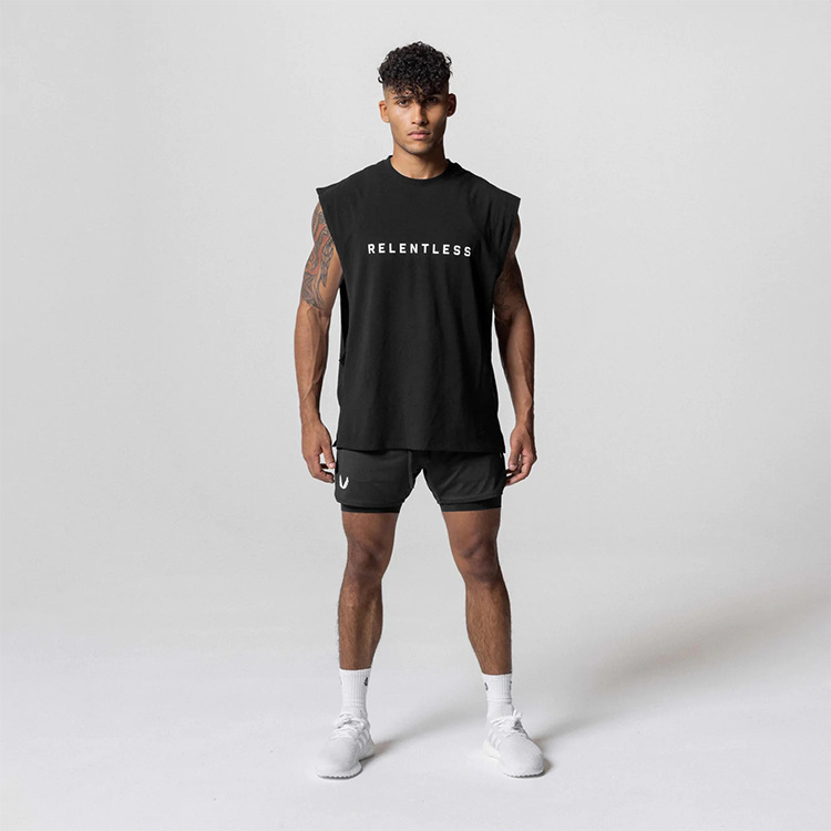 남성 여름 조끼, 미국 스타일 청년용 넓은 어깨 민소매 조끼, 남성 트렌디하고 다용도로 활용 가능한 속건 스포츠 베이스 레이어스토어 가기