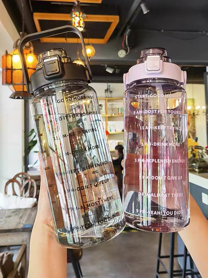 밀짚 시간 스케일 2000ml 스포츠 인터넷 연예인 여름 물병 플라스틱 주전자 대용량 물컵 여성스토어 가기